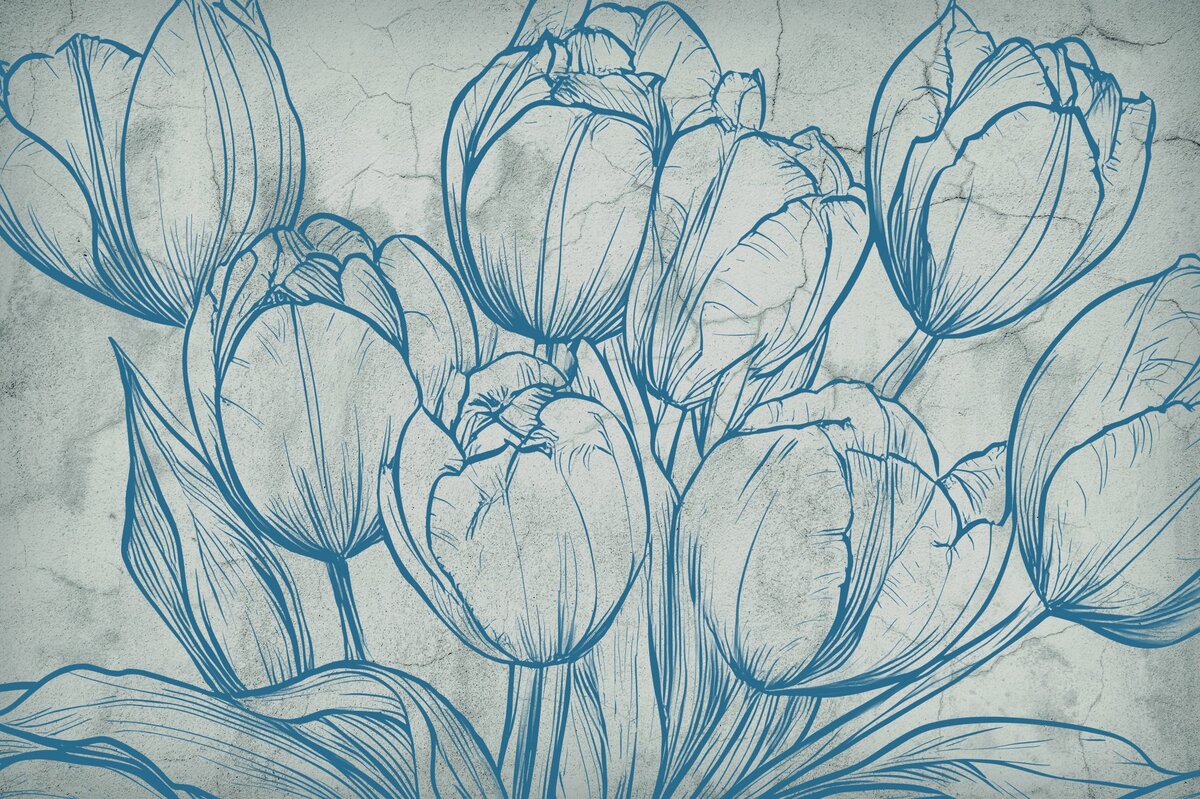 Papier peint : Tulipes dessinées sur béton