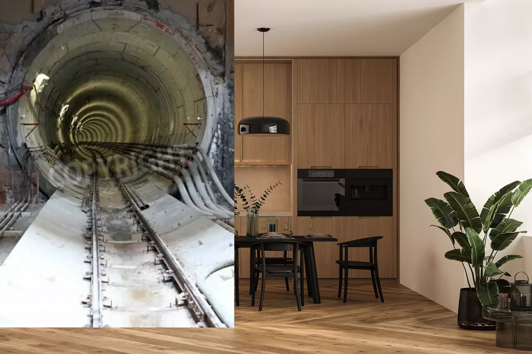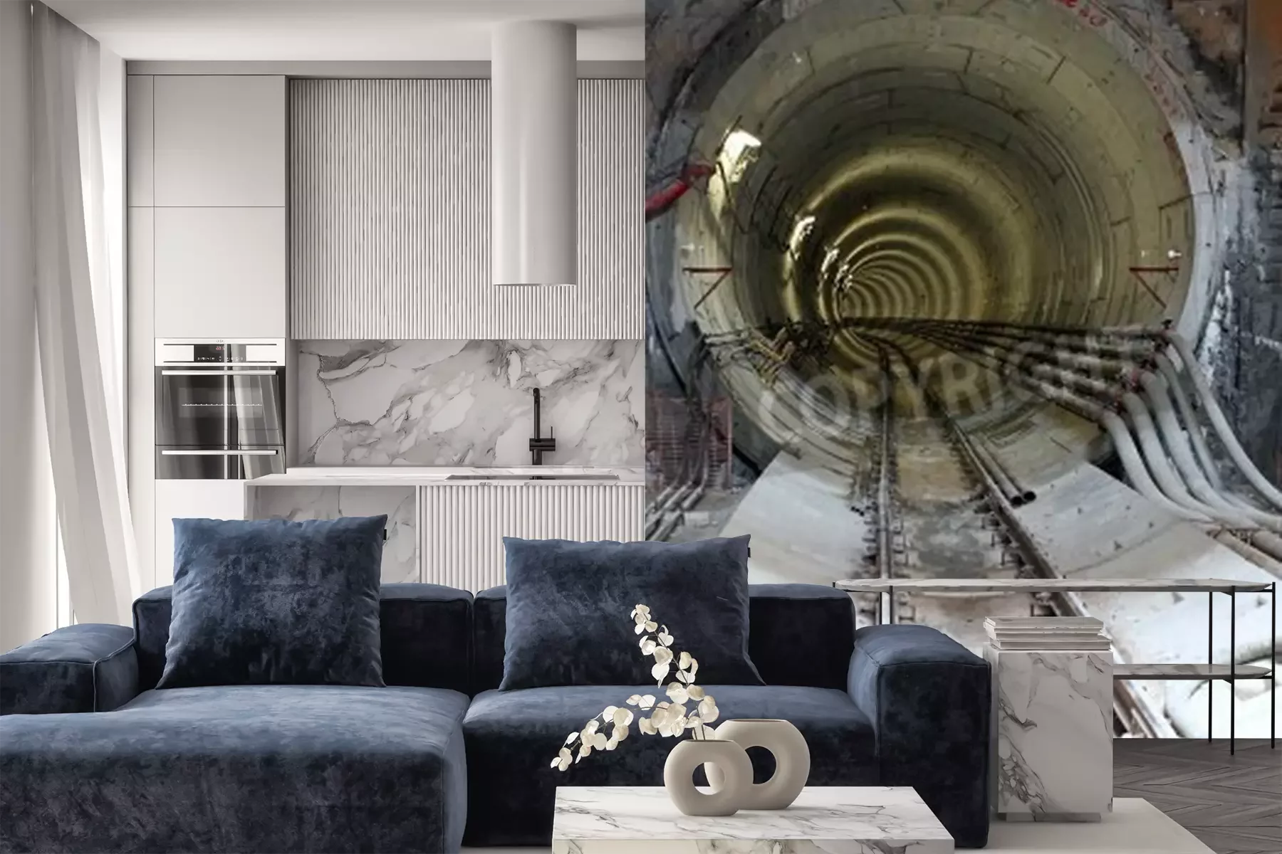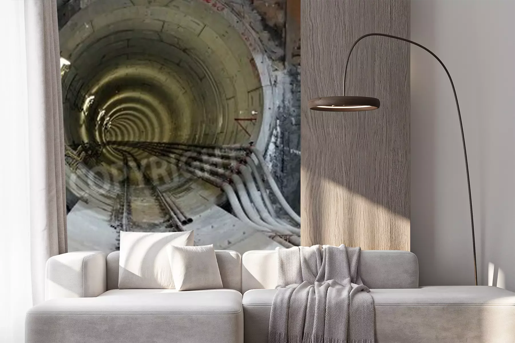 Papier peint  Tunnel avec une voie ferrée et des câbles