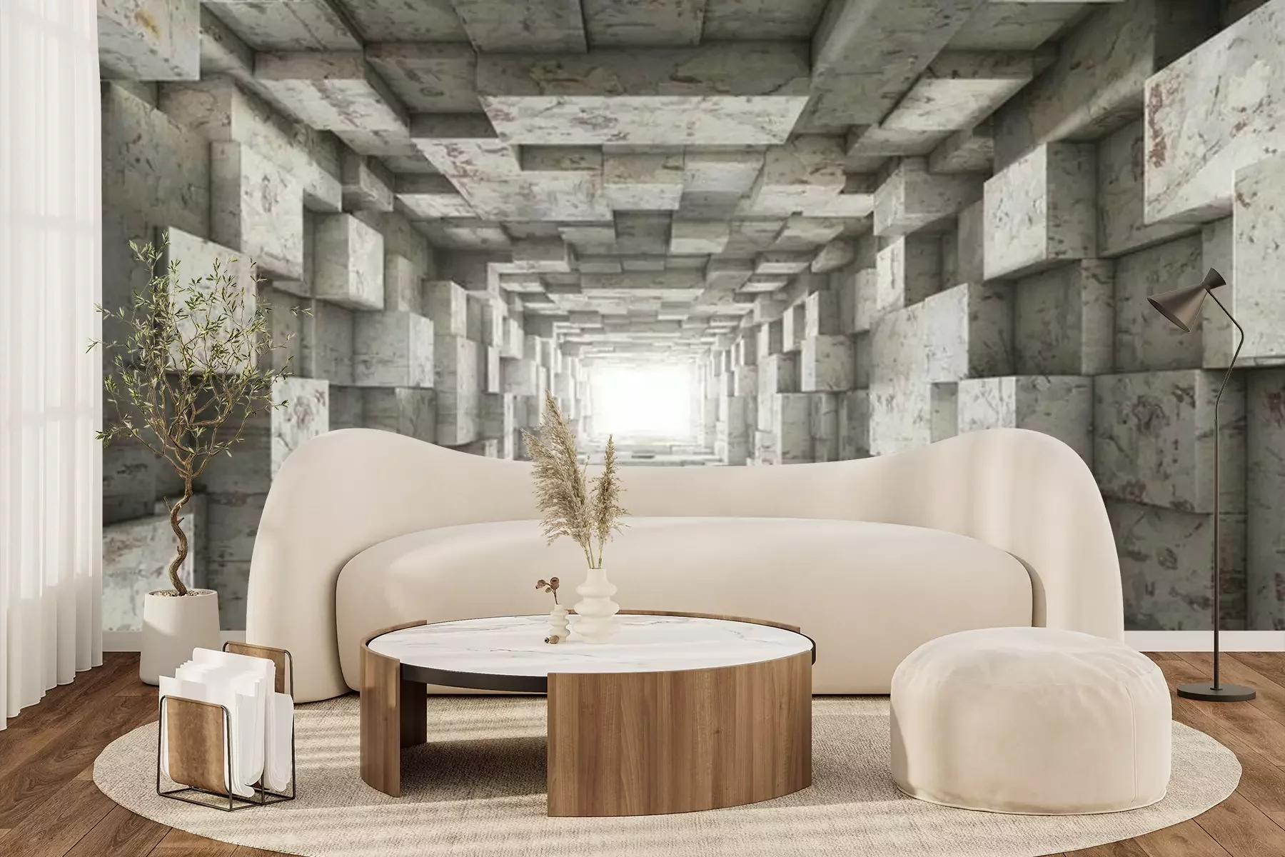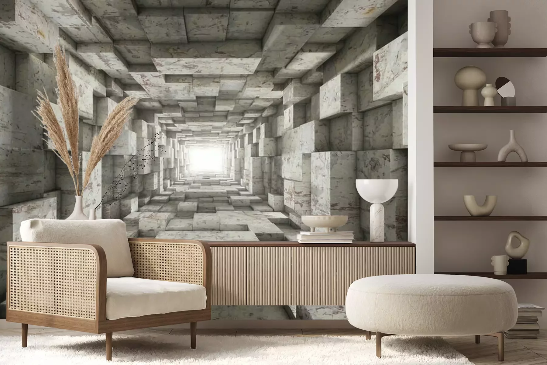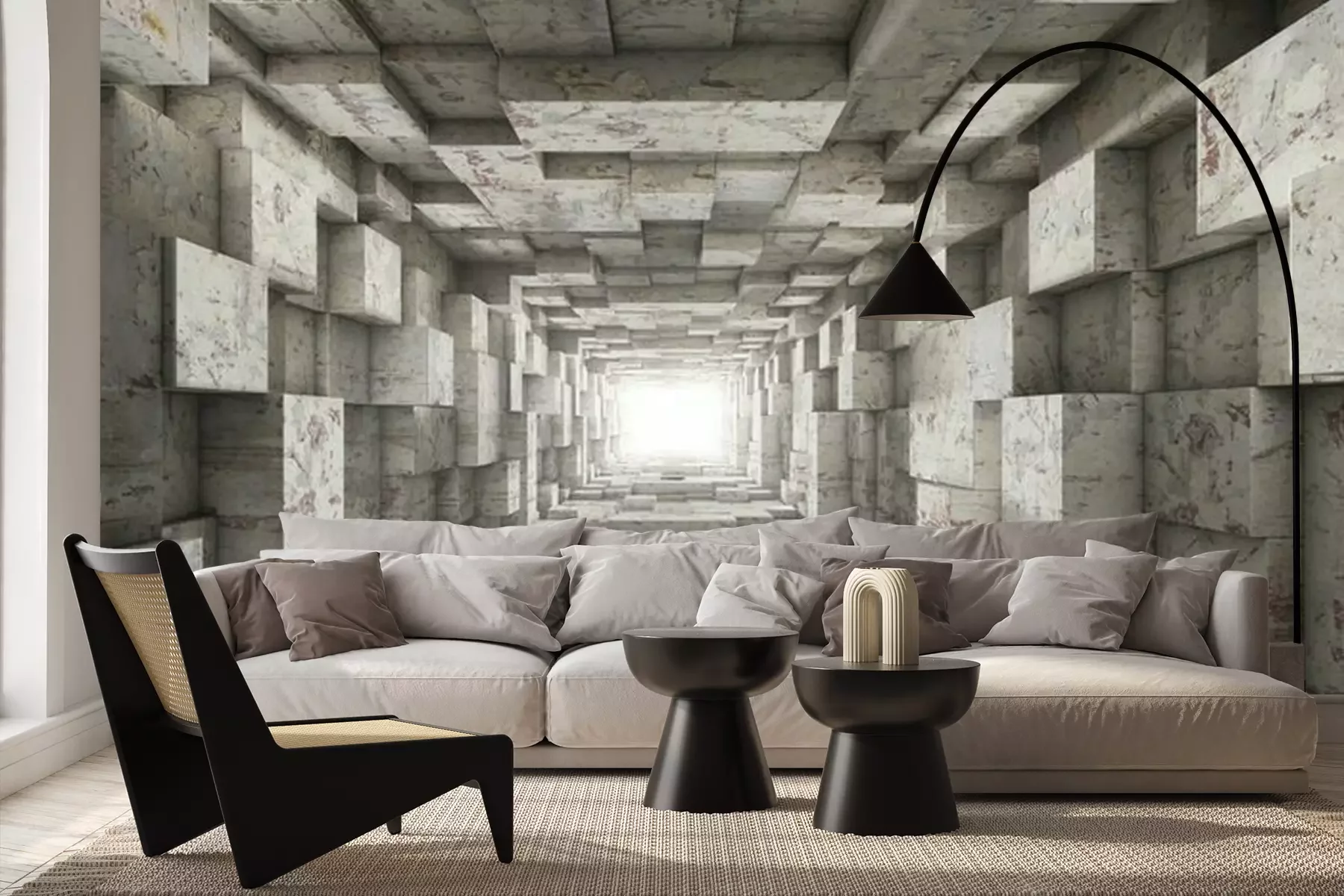 Papier peint  Tunnel géométrique en béton