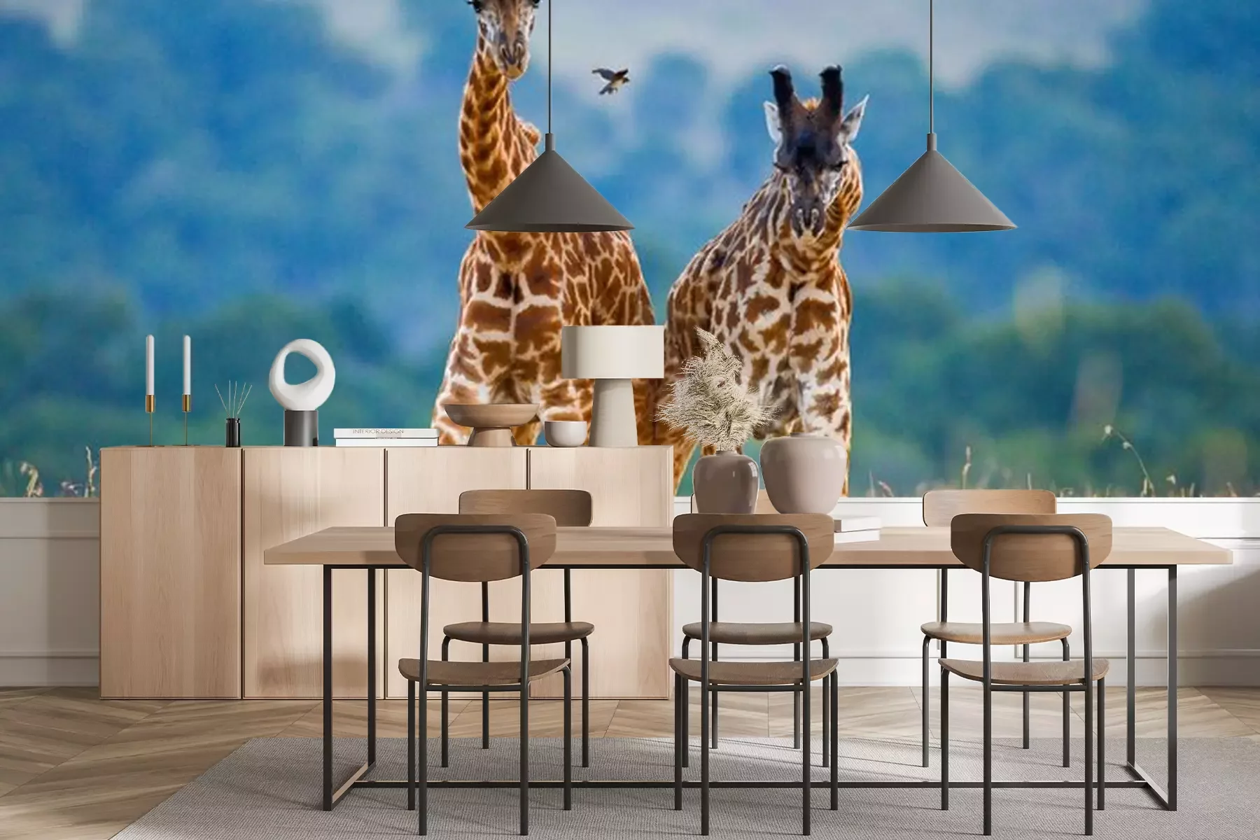 Papier peint  Two male giraffes fighting each other in the savannah. Kenya. Tanzania. East Africa.