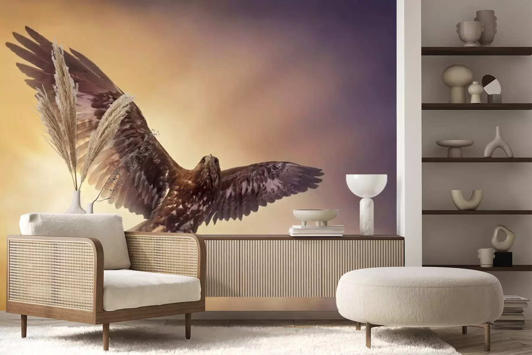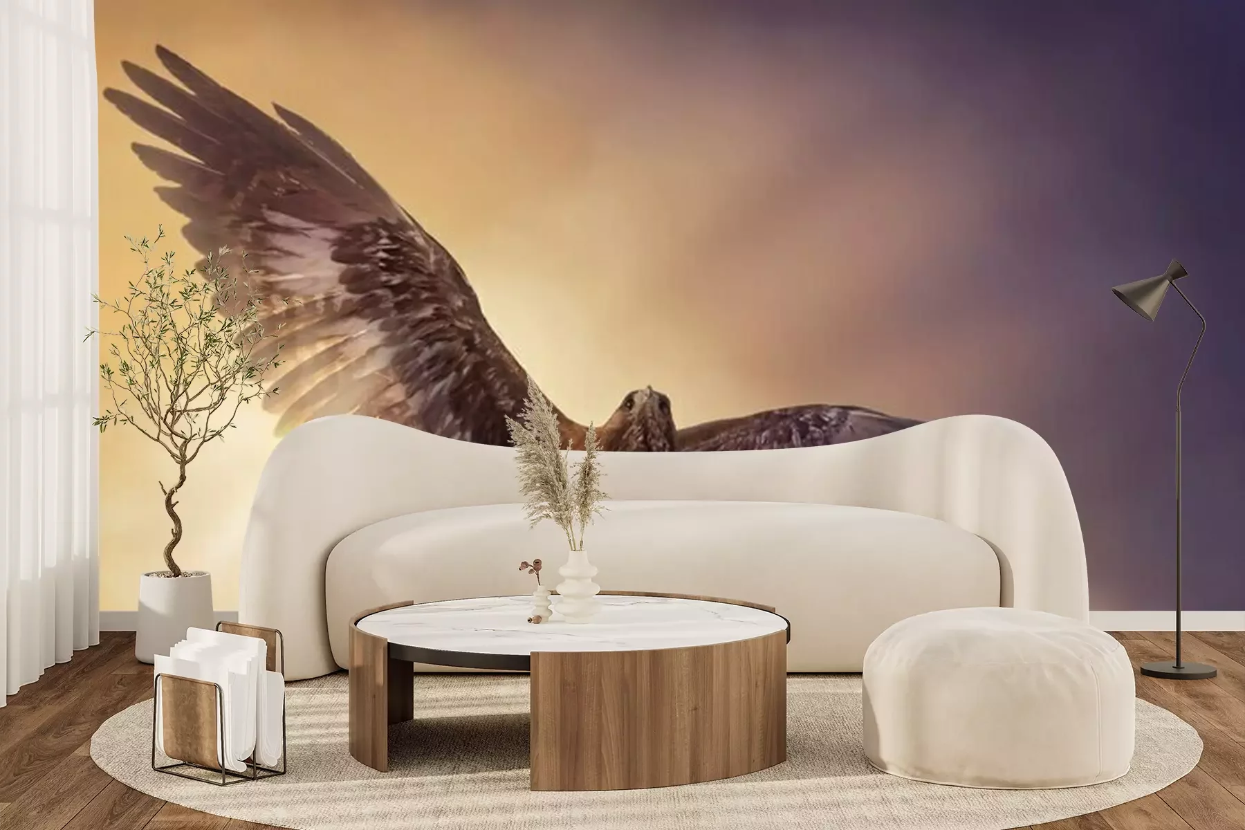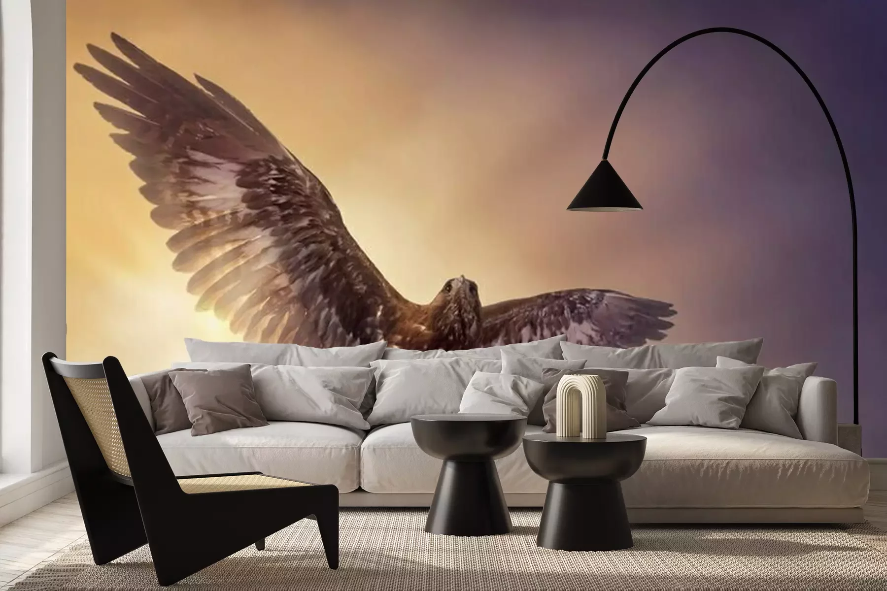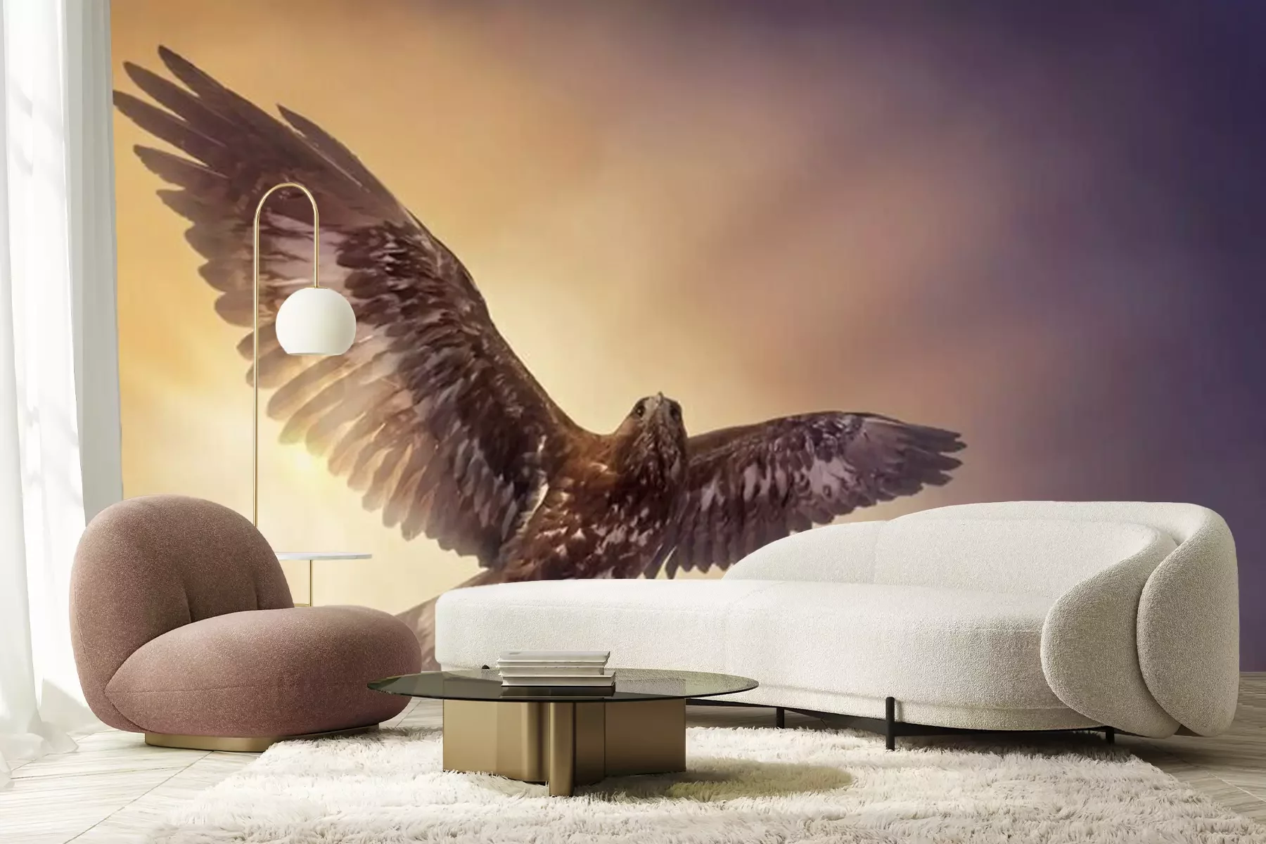 Papier peint  Un aigle en vol avec des rayons de soleil en arrière-plan
