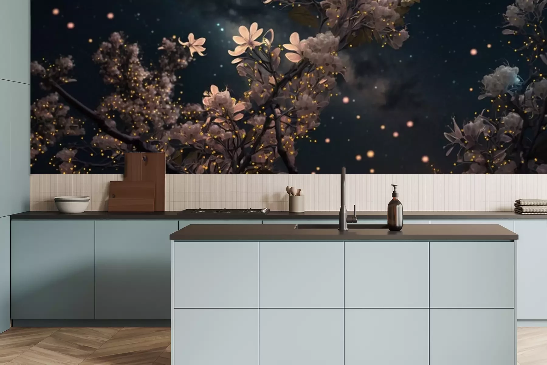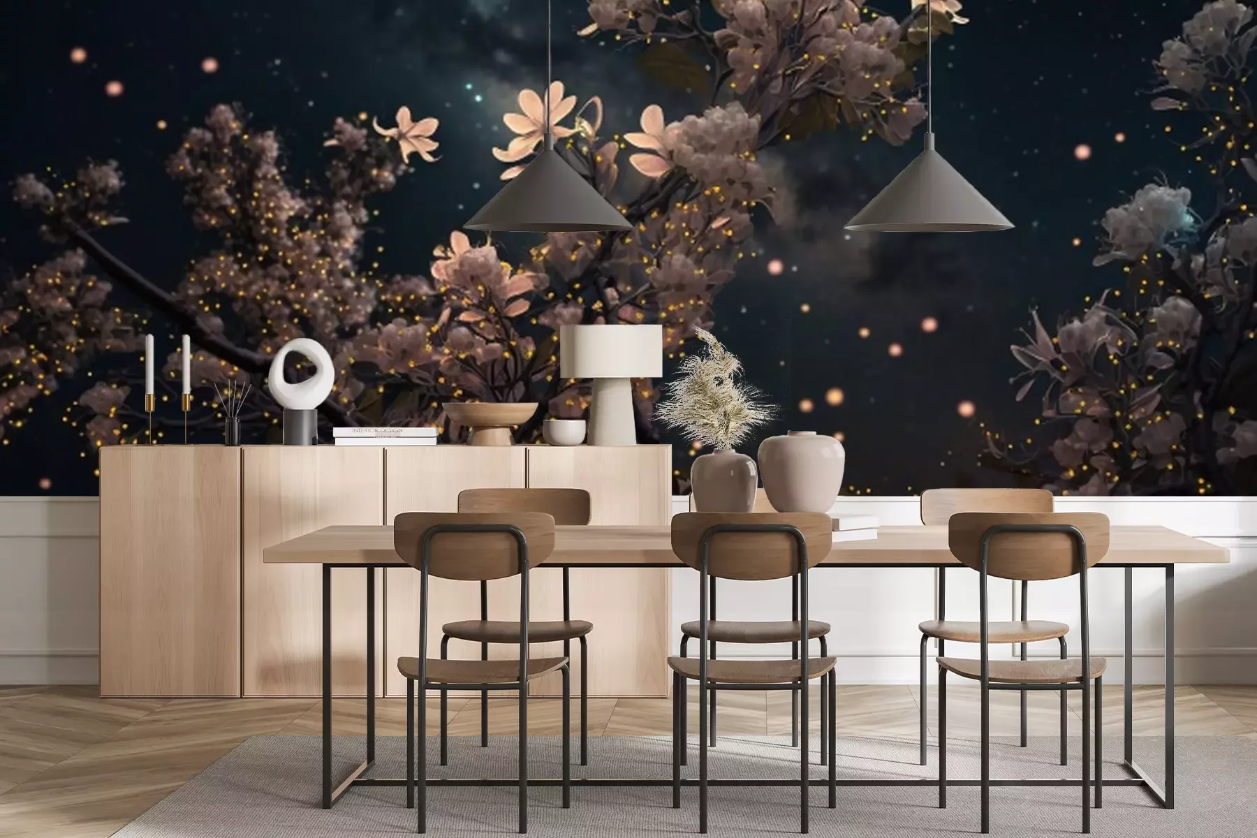 Papier peint  Un arbre en fleurs dans l'aura nocturne