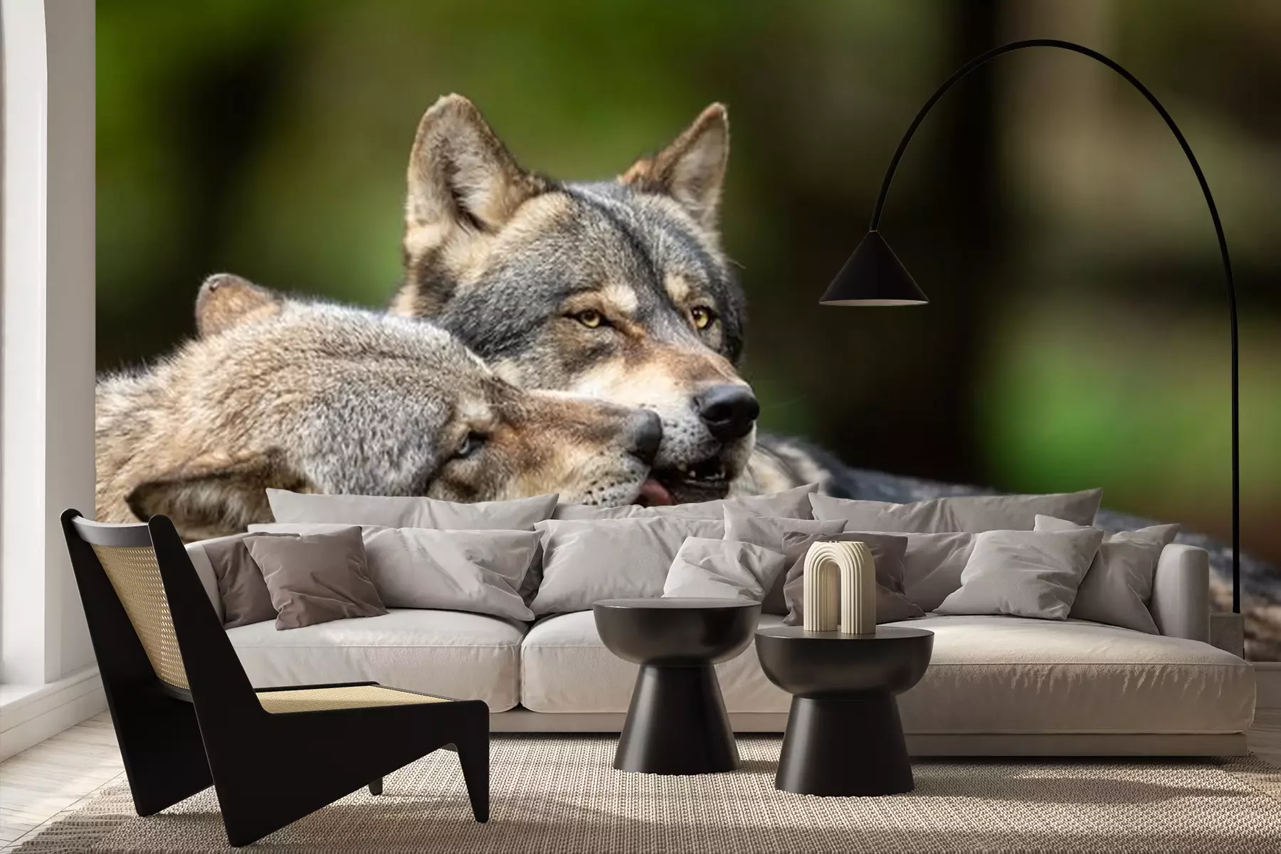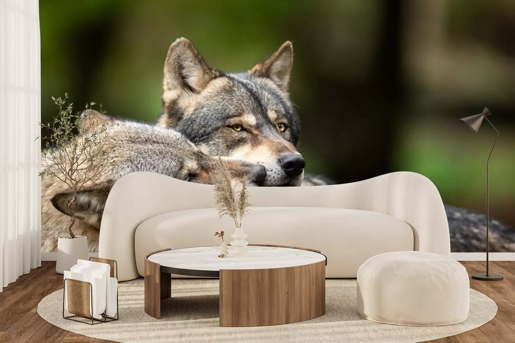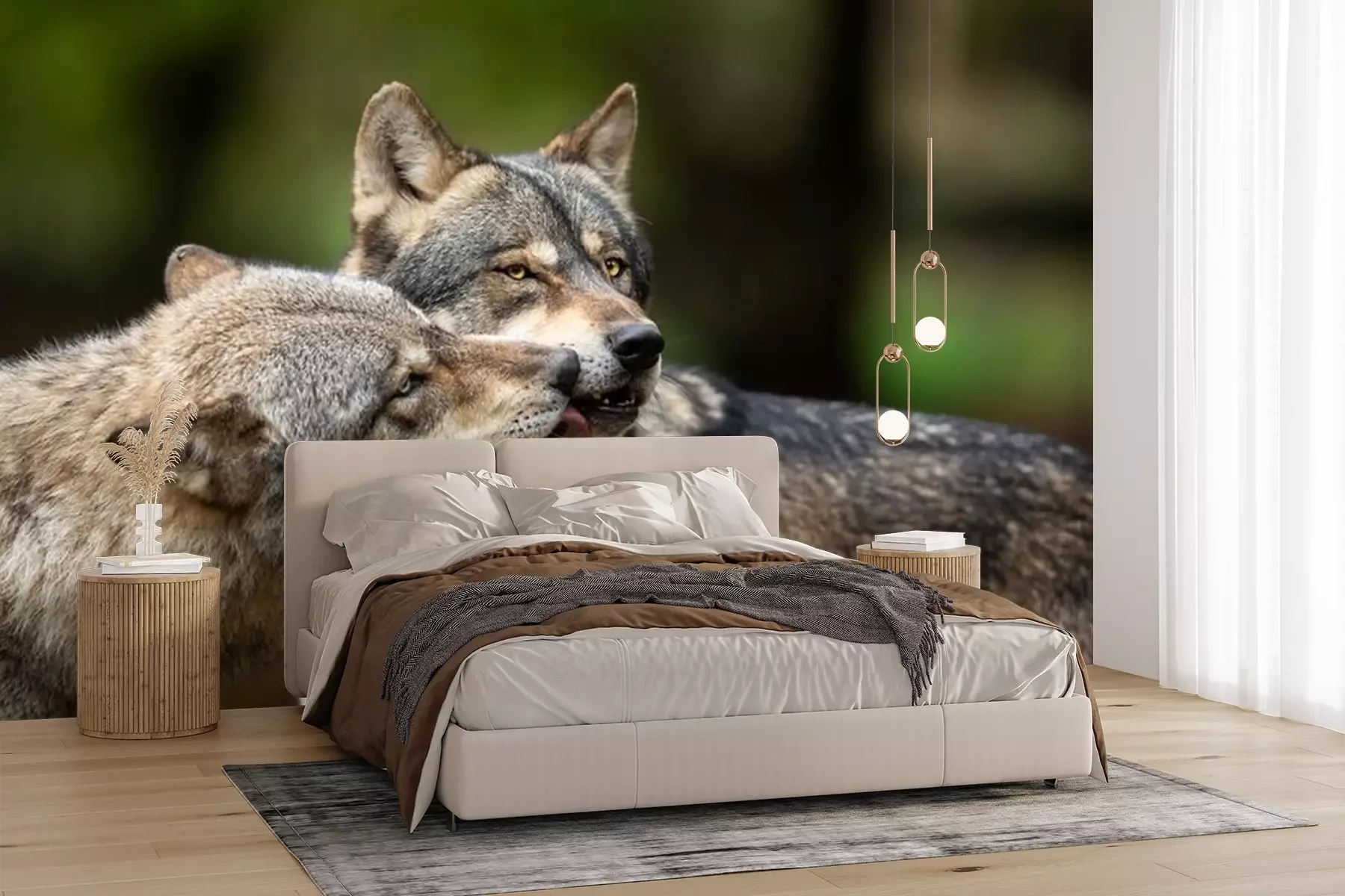 Papier peint  Un couple de prédateurs sauvages dans une forêt