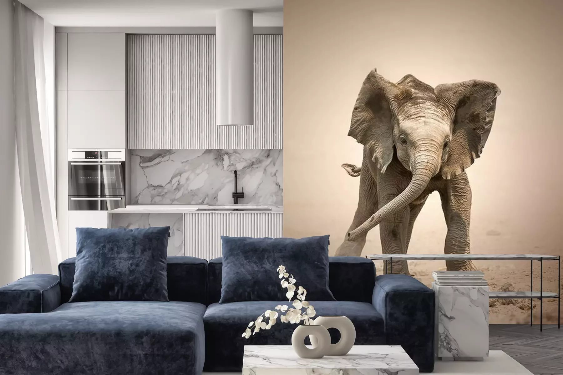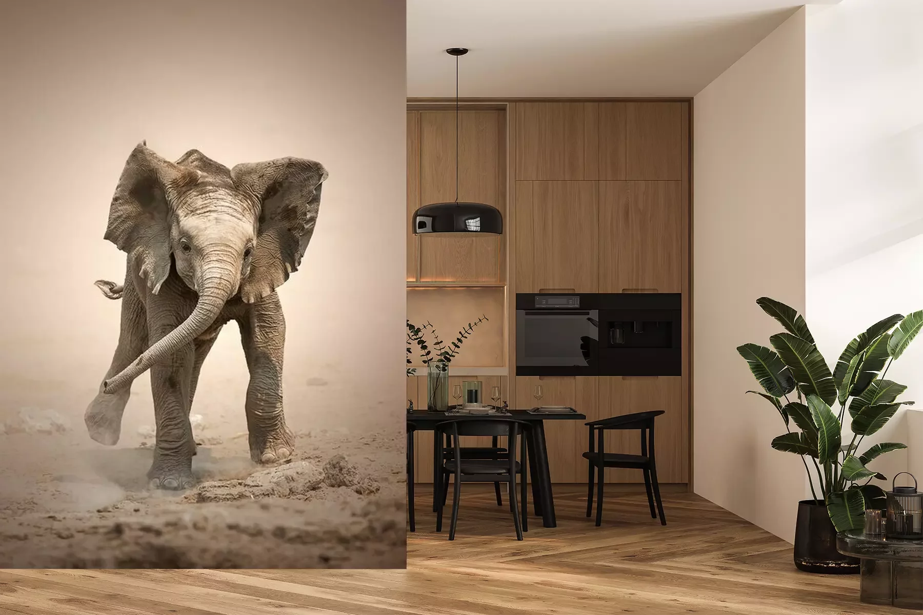 Papier peint  Un éléphant jouant dans le sable