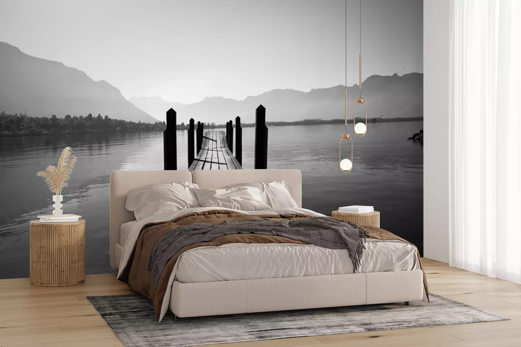 Papier peint  Une jetée s'enfonçant profondément dans le lac