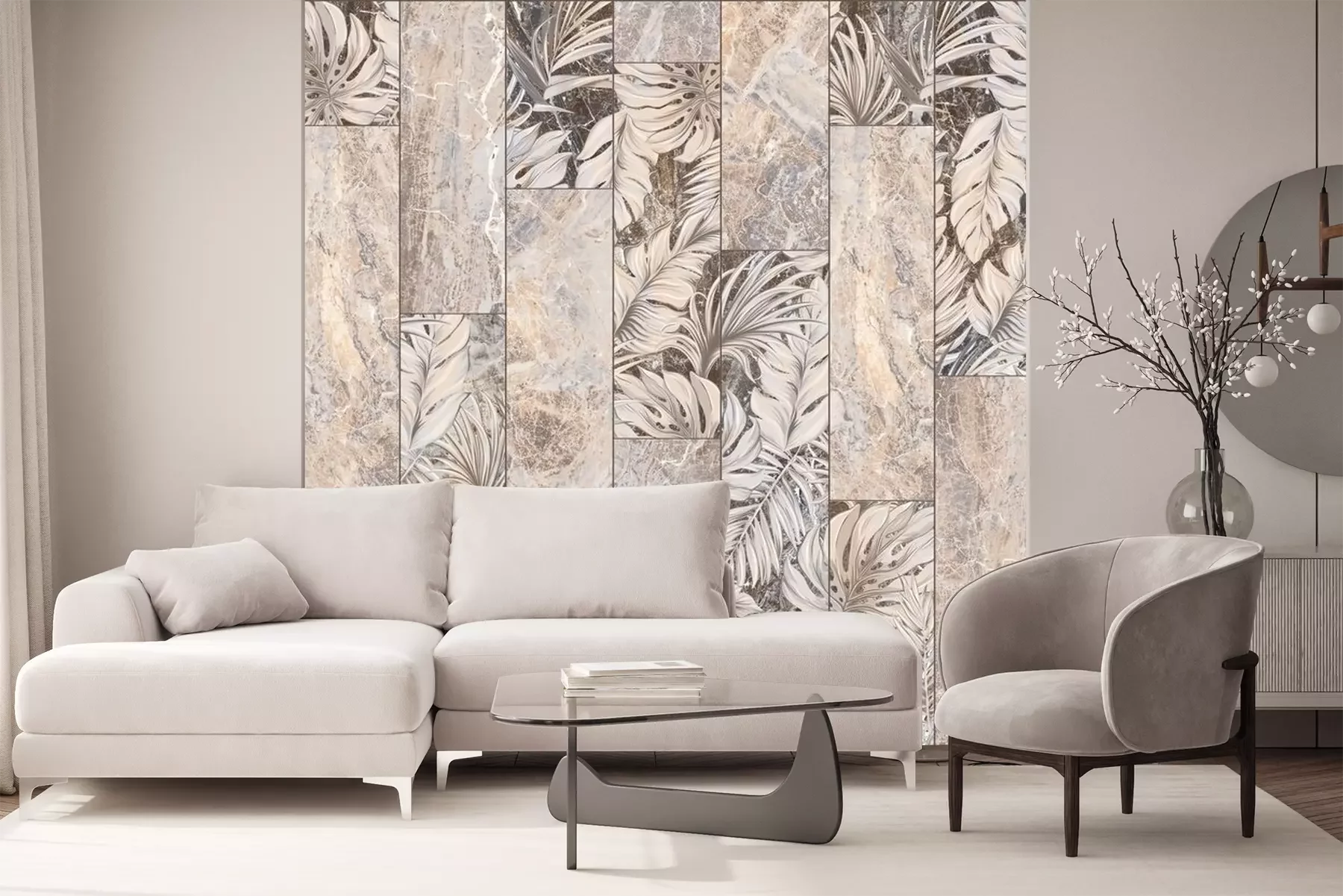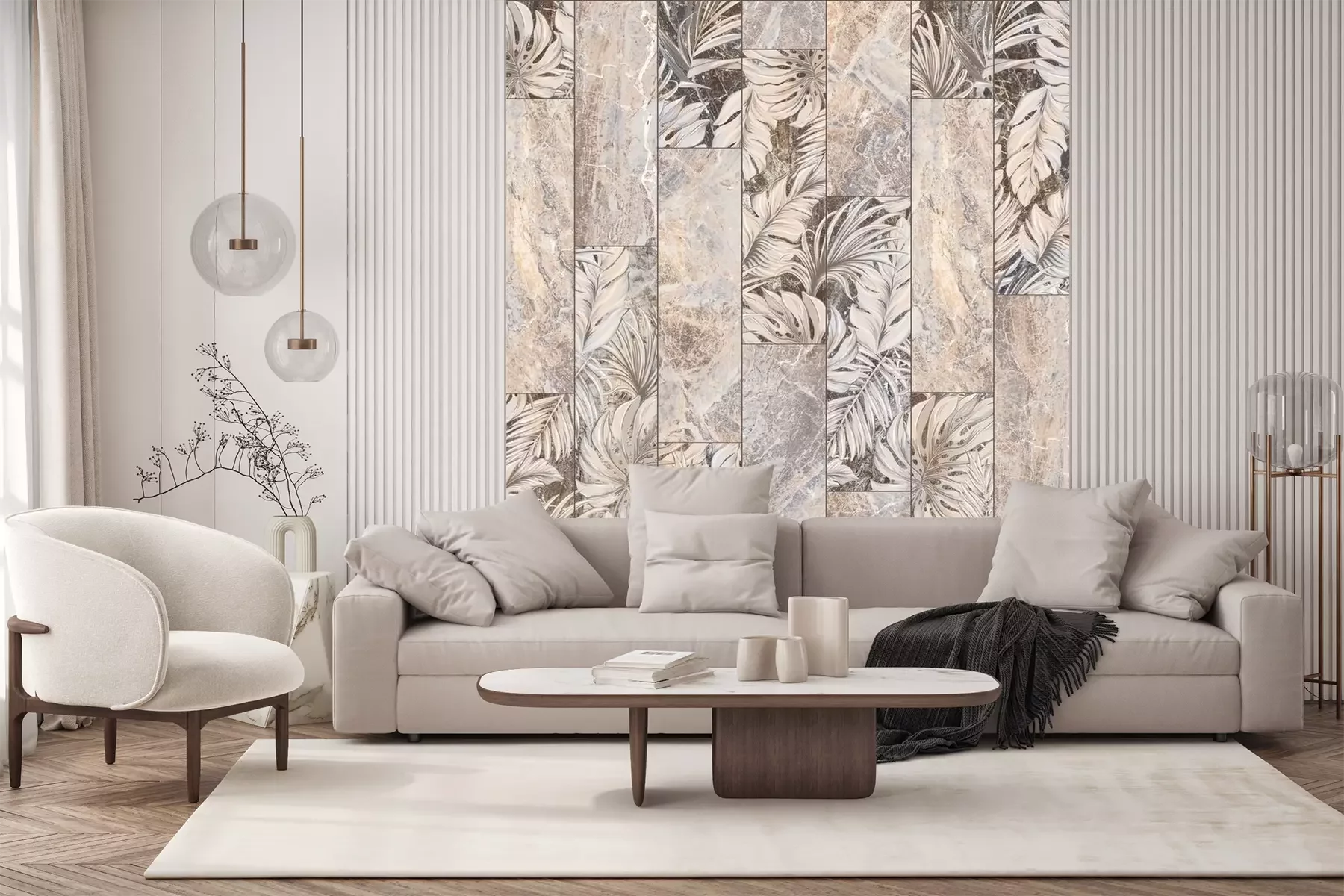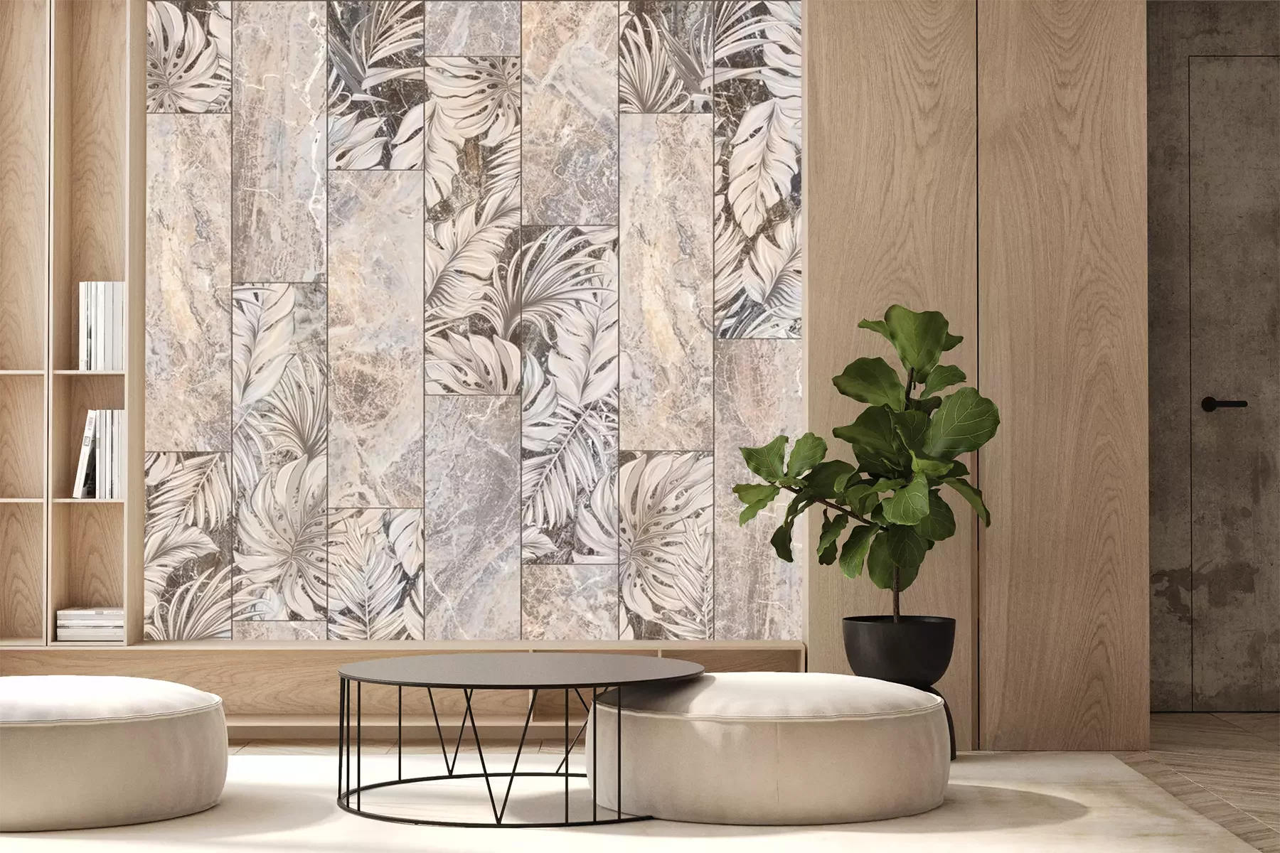Papier peint  Une mosaïque de carreaux rectangulaires avec un motif de feuilles