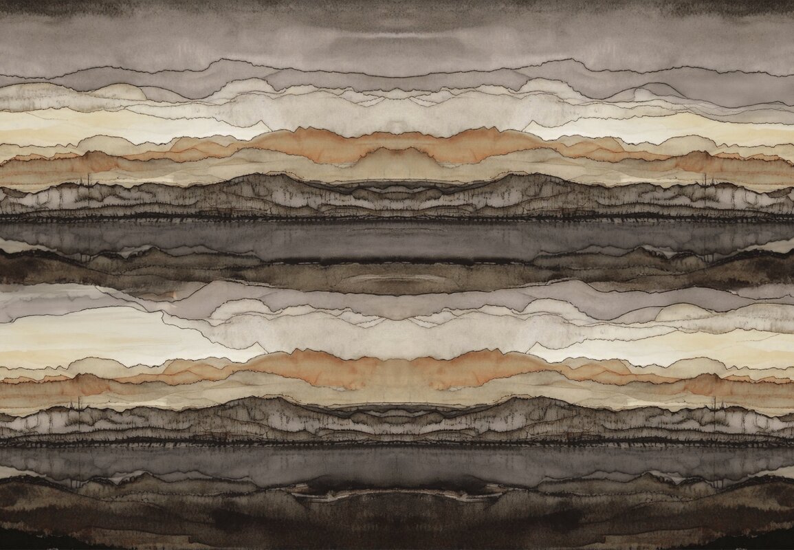 Papier peint : Vagues abstraites à l'aquarelle dans des tons bruns