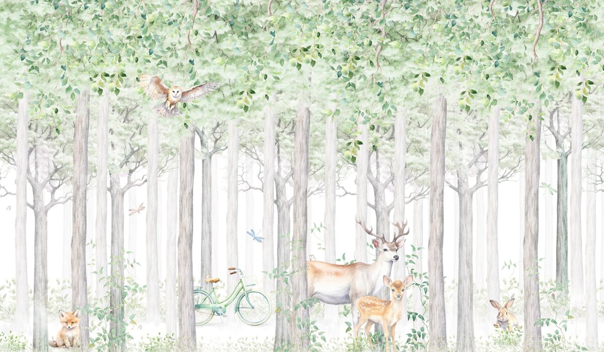 Papier peint : Végétation forestière avec un cerf et un chevreuil