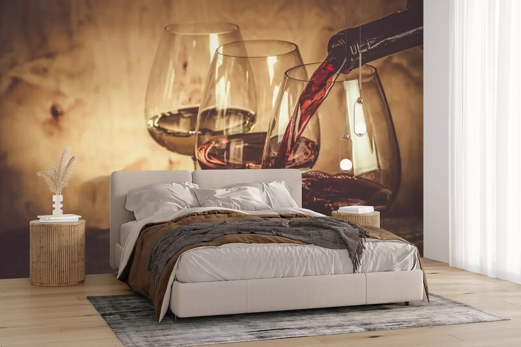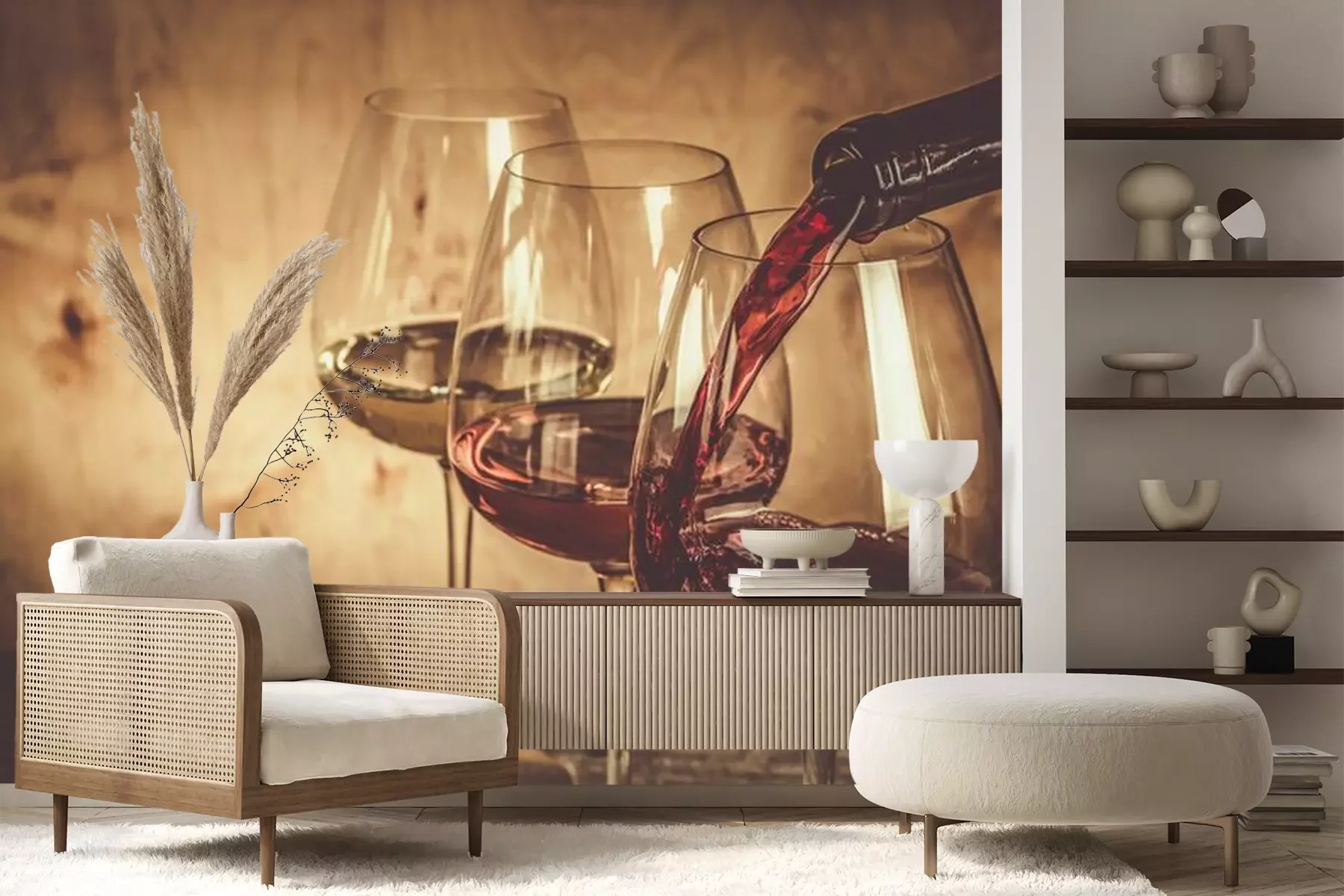 Verres à vin sur un fond de bois