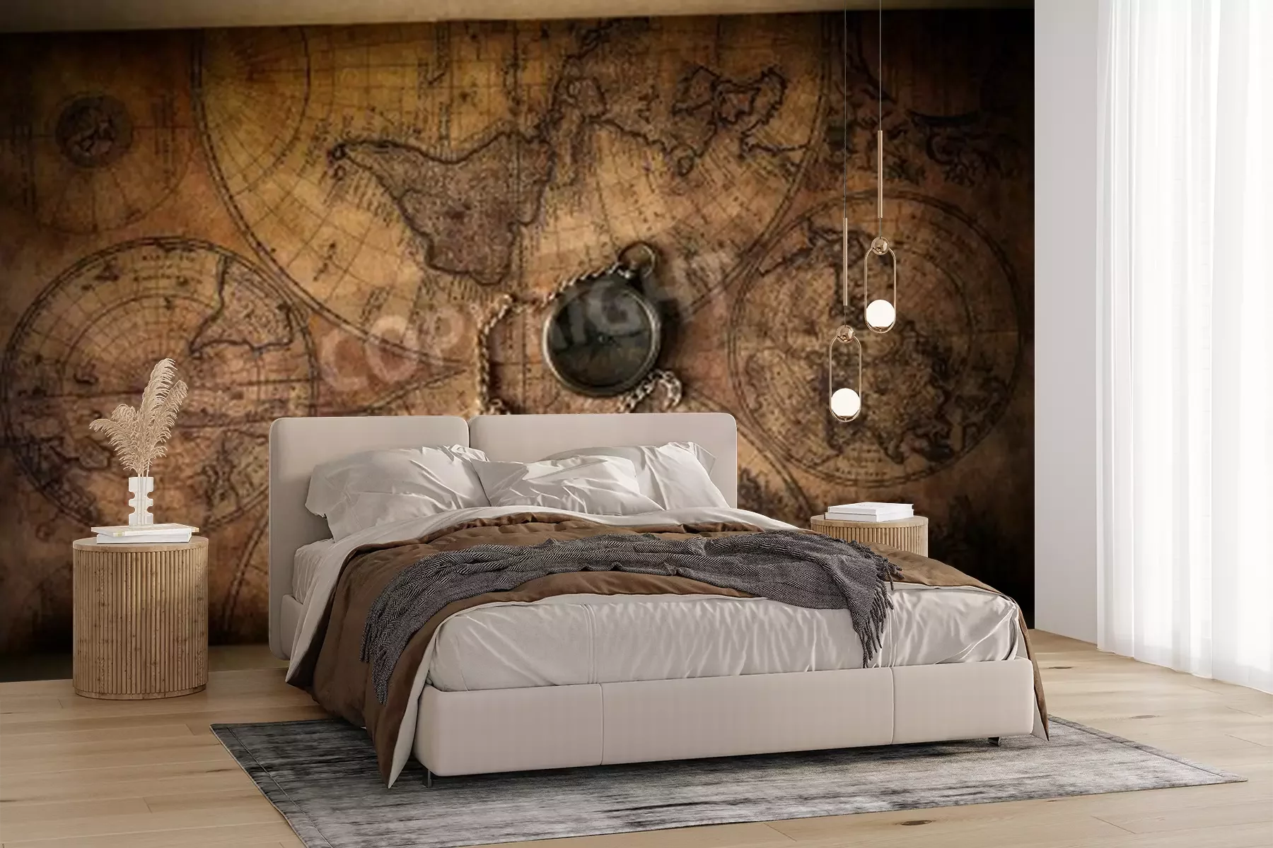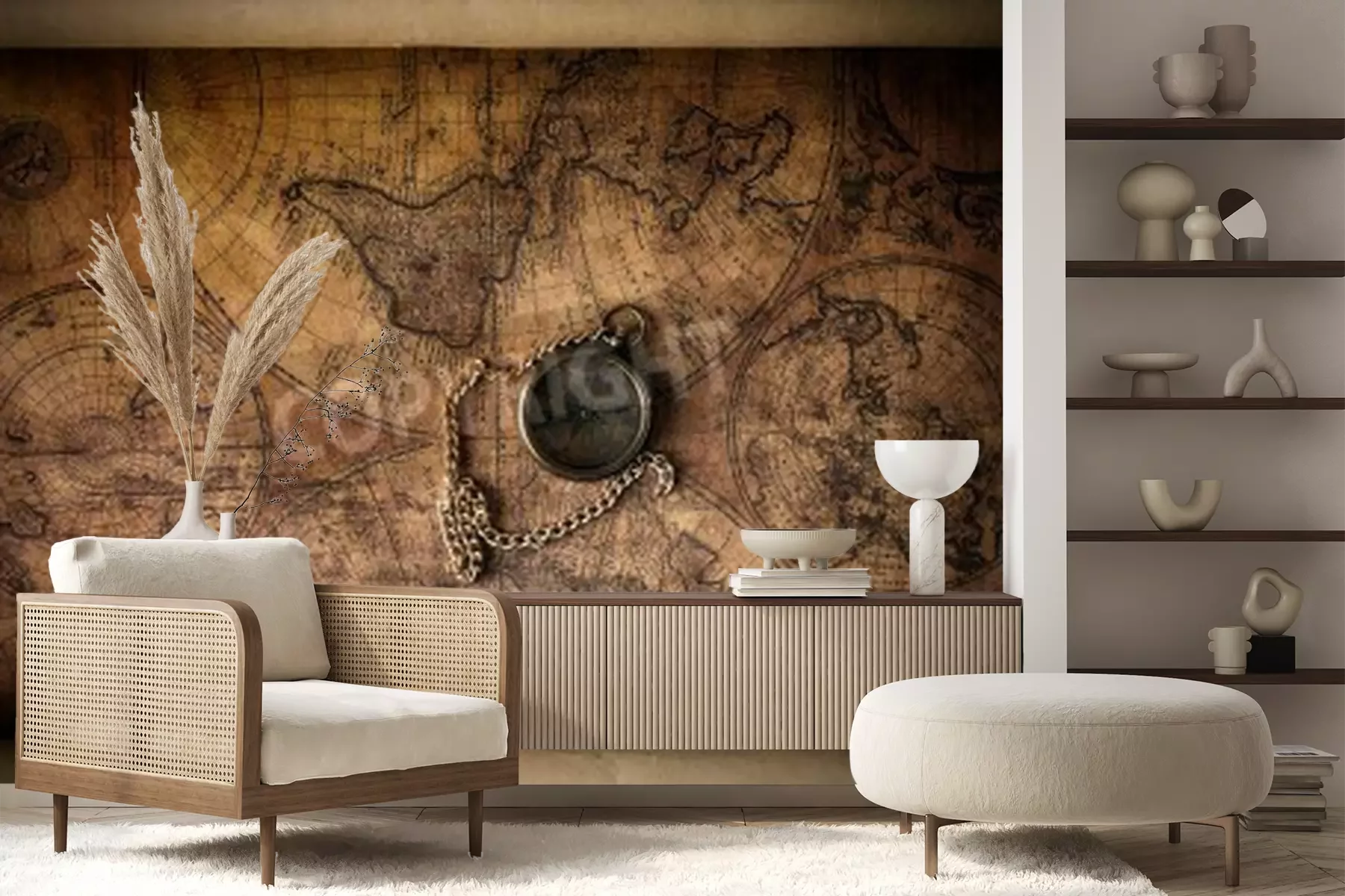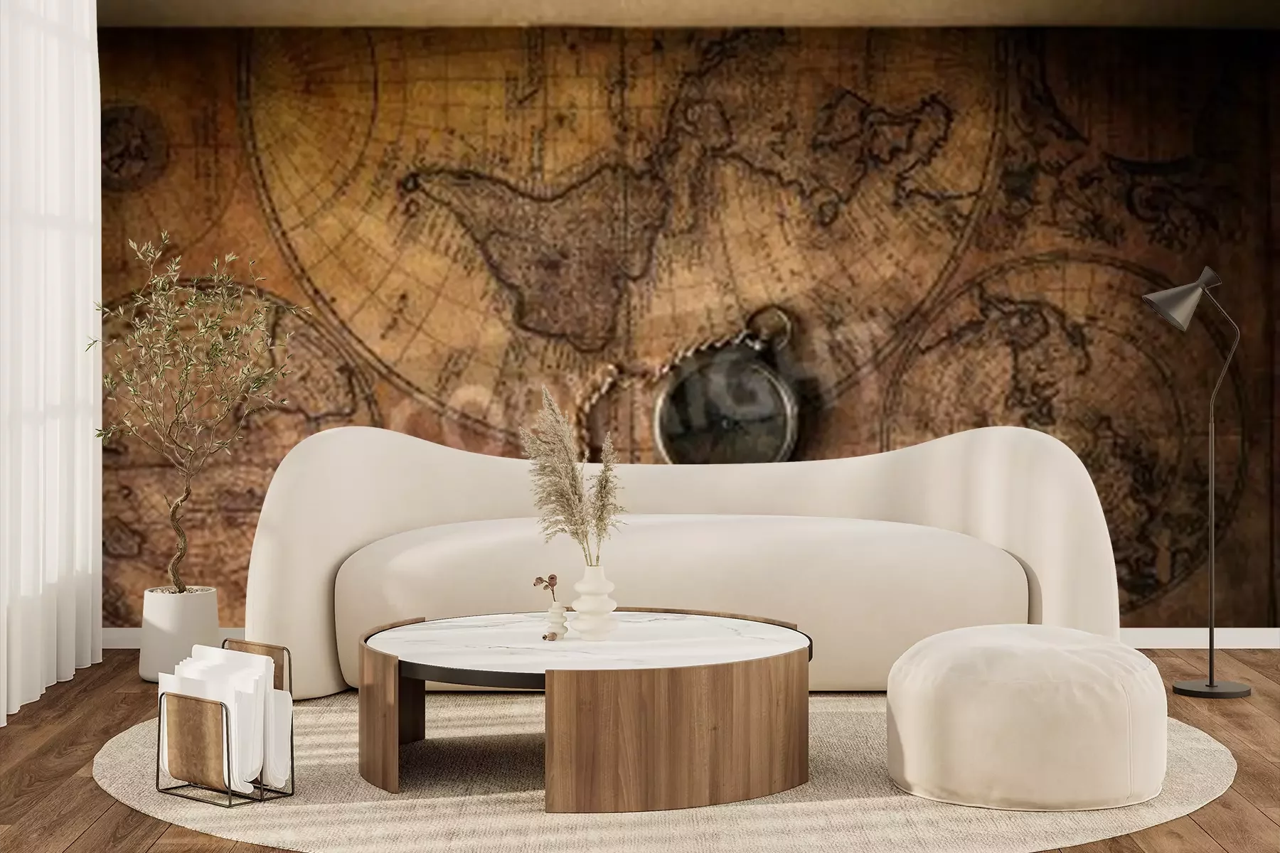 Papier peint  Vintage compass on old map