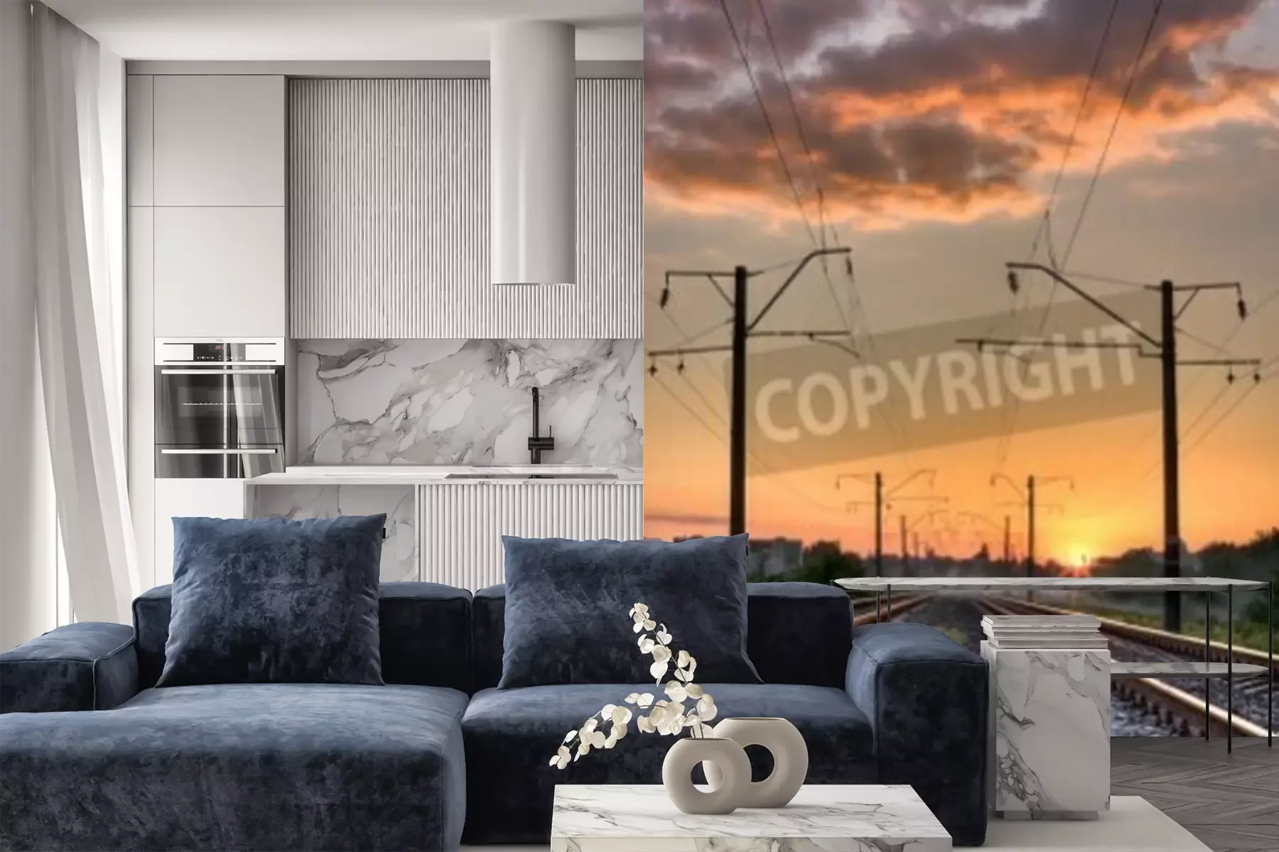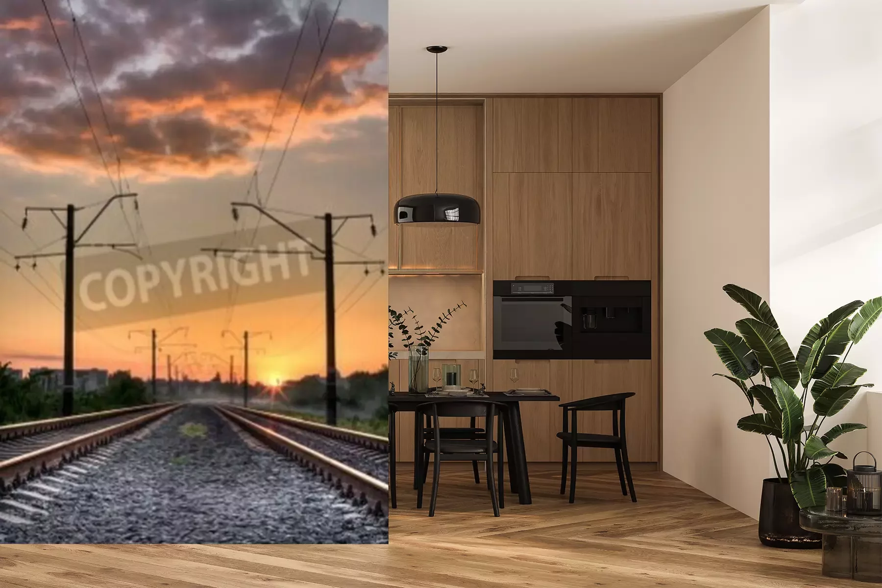 Papier peint  Voie ferrée déserte au crépuscule