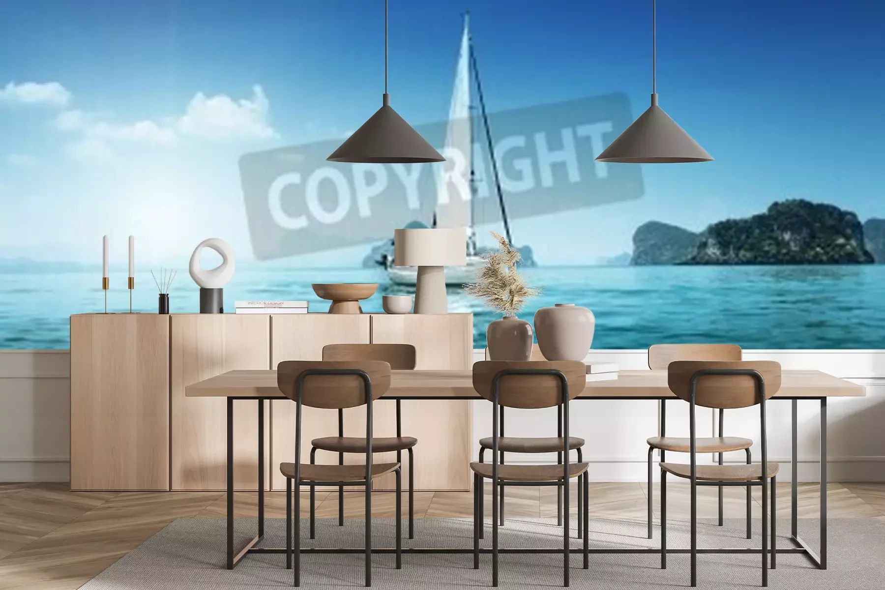 Papier peint  Voilier environnement bleu