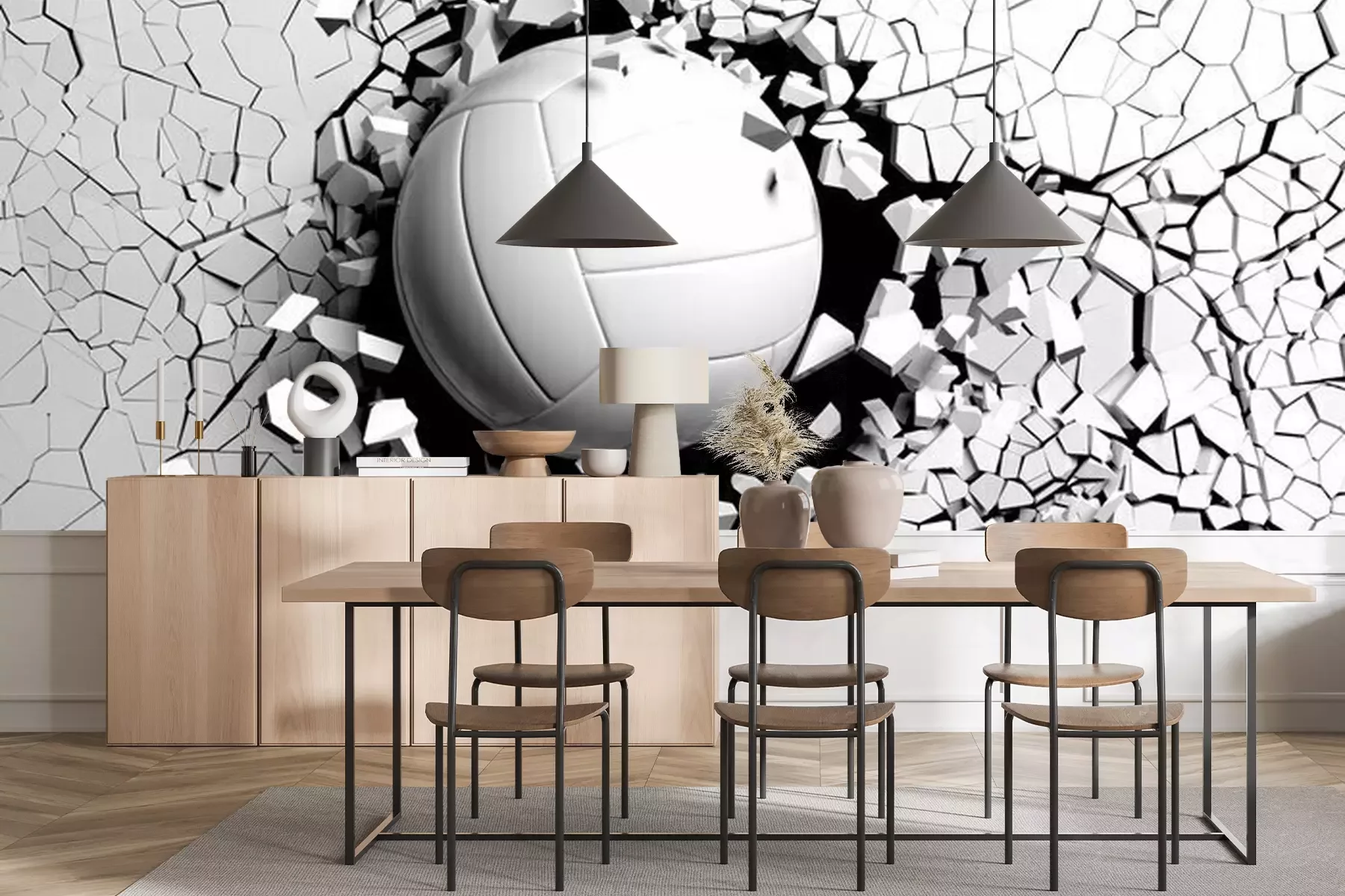 Ballon de football traversant un mur en 3DLivraison sans problème assurée par des transporteurs de confiance