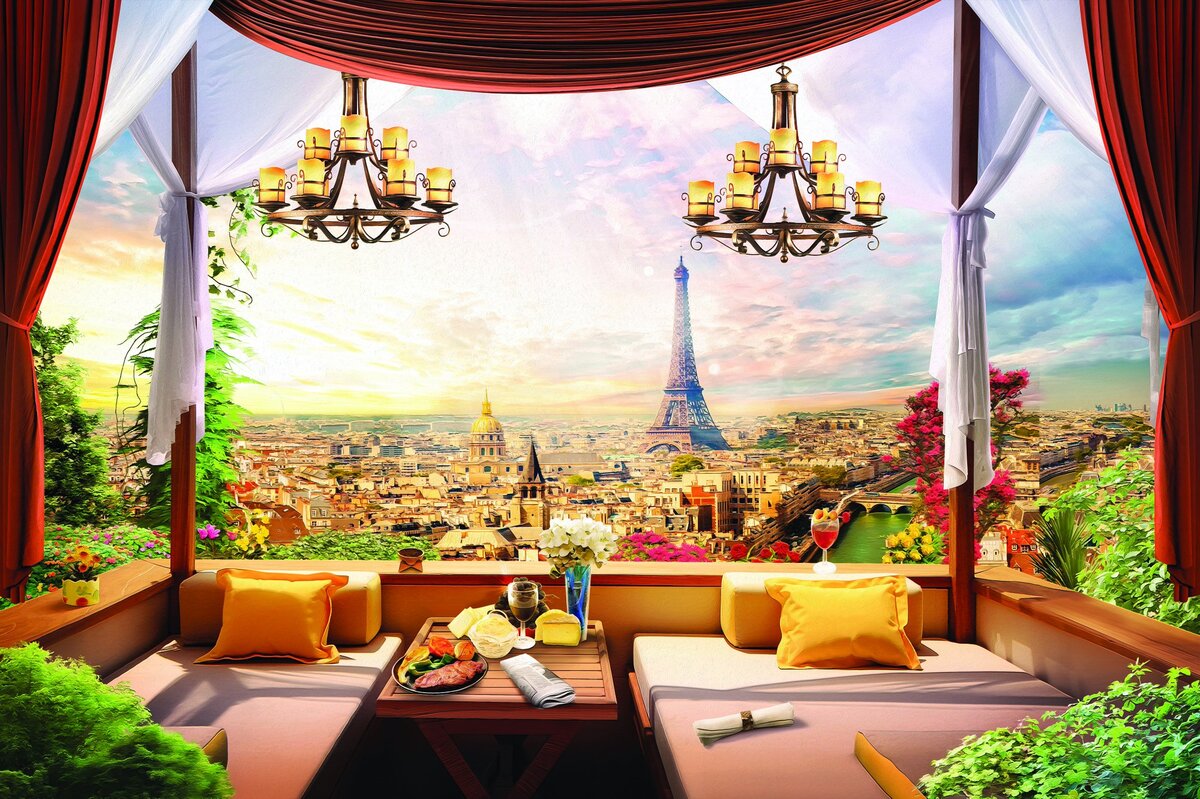 Papier peint : Vue de Paris depuis un balcon au coucher du soleil