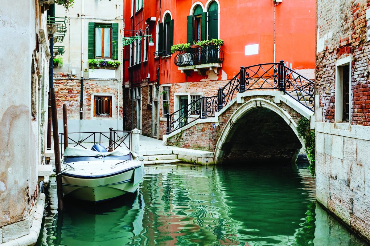Papier peint : Vue sur le pont et le bateau parmi les maisons