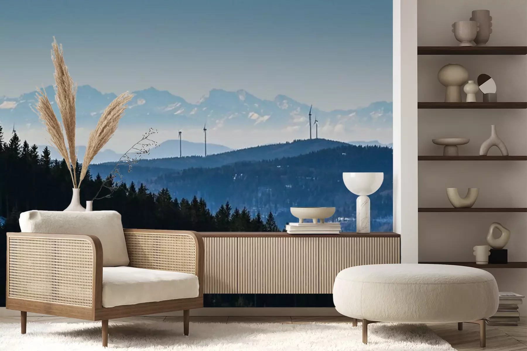 Papier peint  Windkraft im Südschwarzwald mit Alpenpanorama