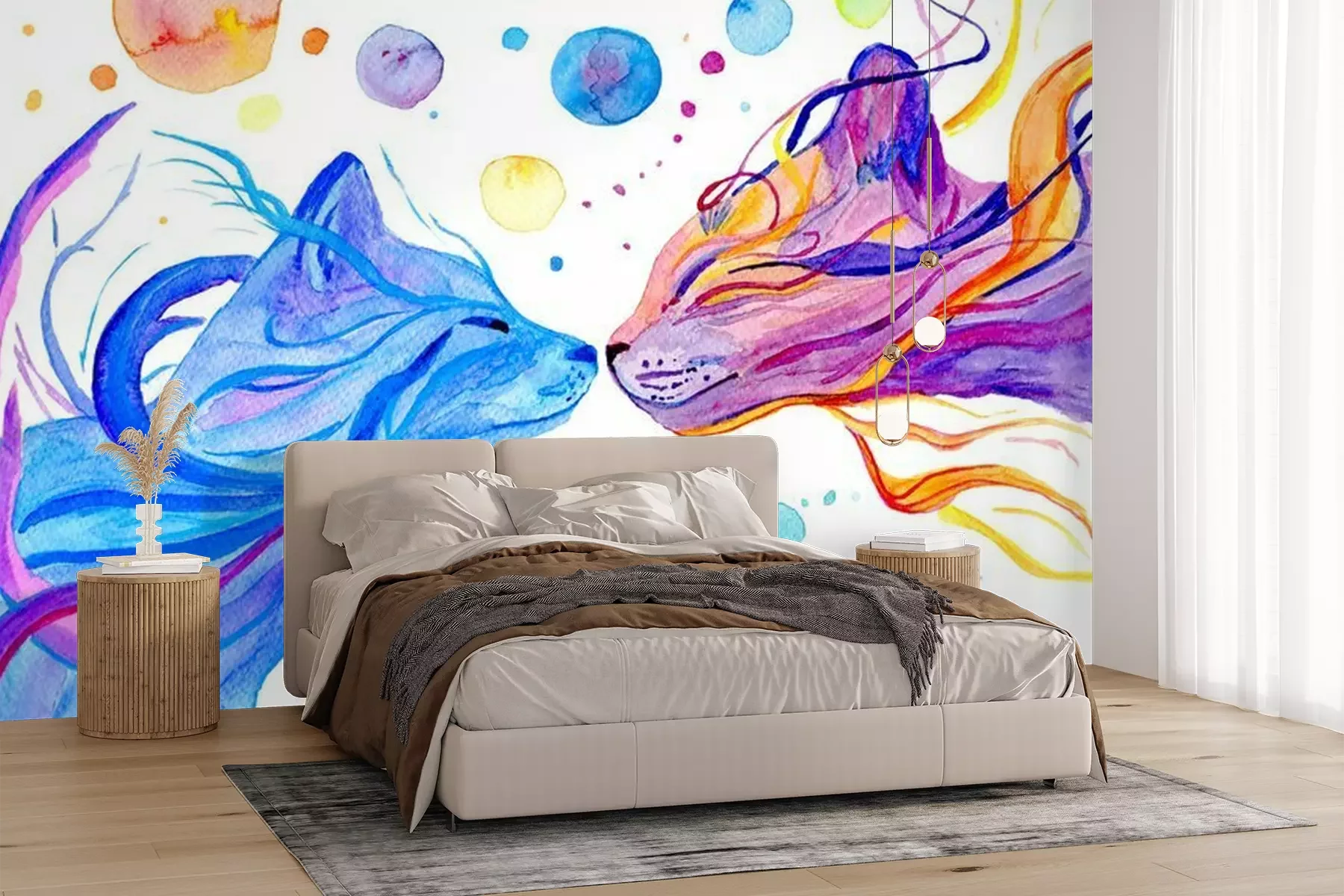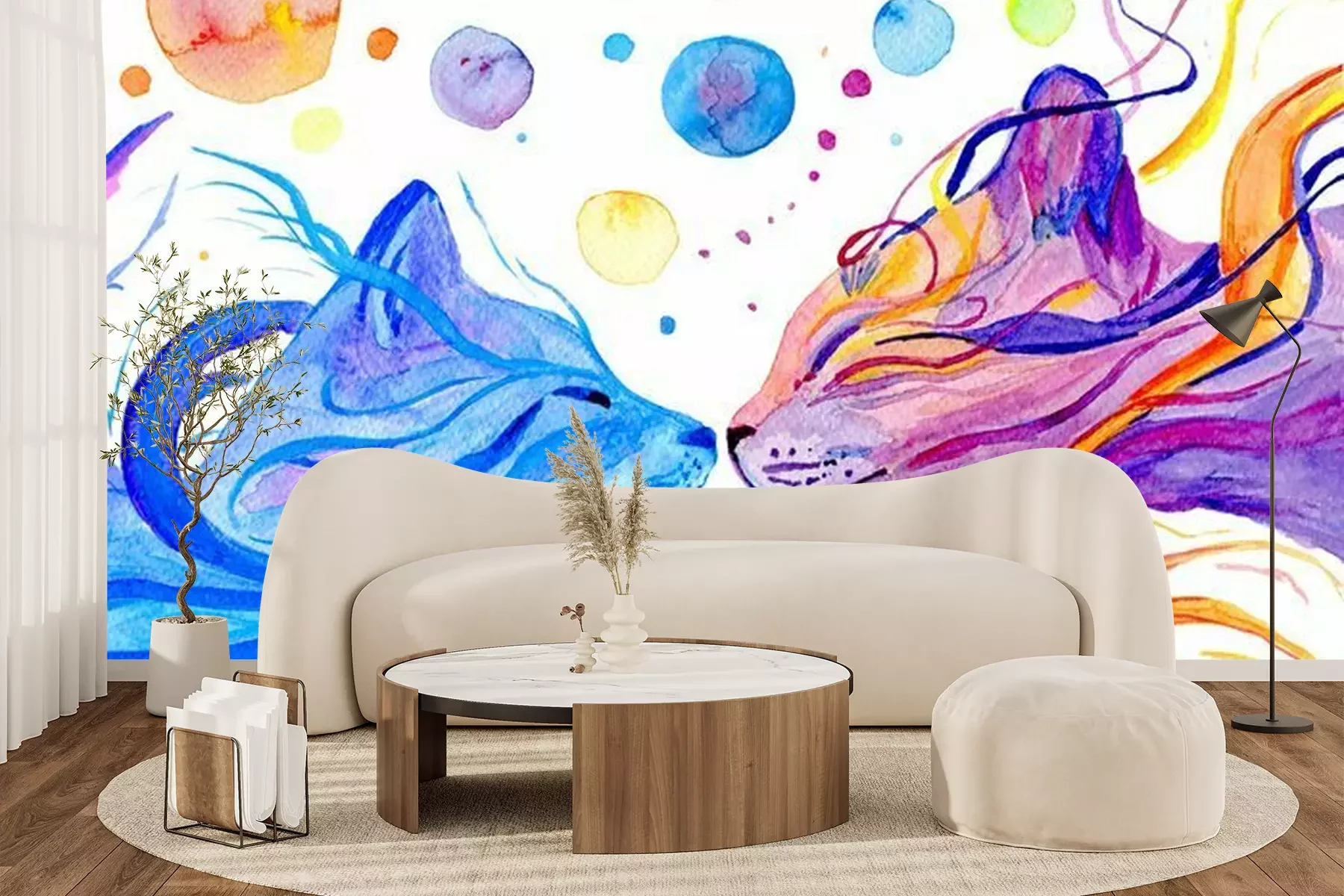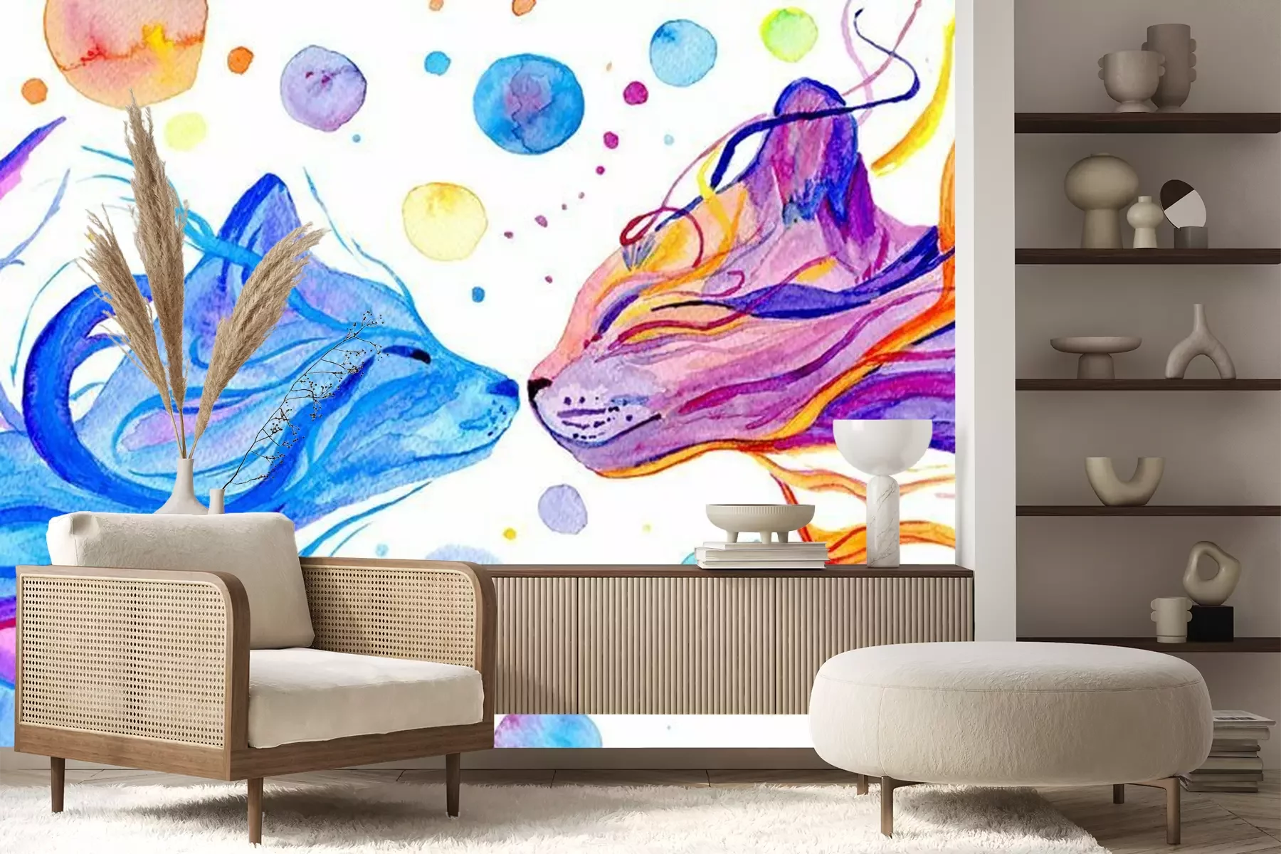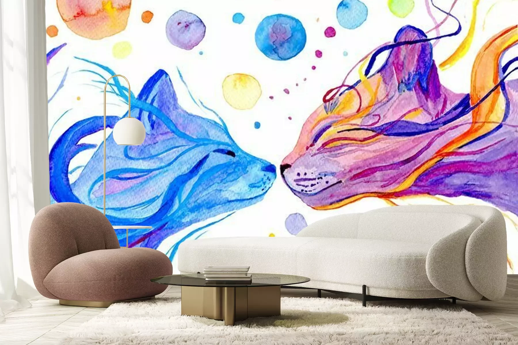 Papier peint  Watercolor multi colored cats isolated on white background. Hand painted illustration.