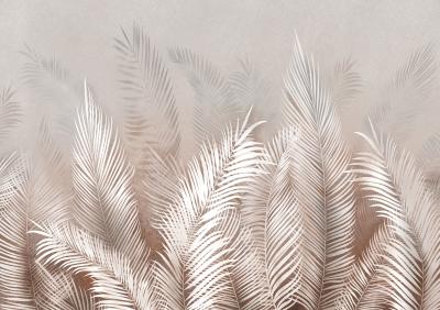 Graphiques avec des feuilles aux couleurs beigesPapier peint