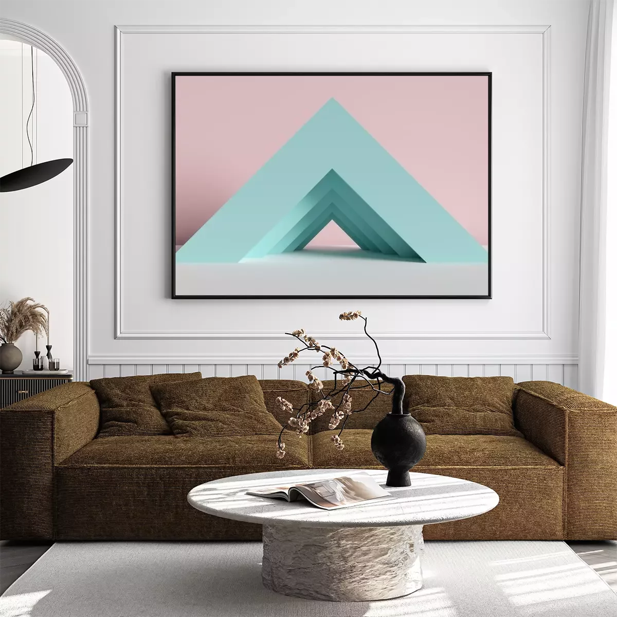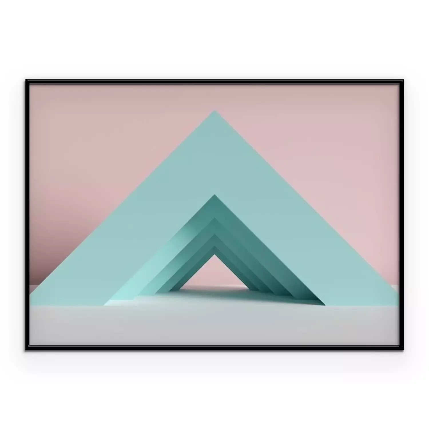 Poster : 3d render, abstract background, triangle, corner, primitive geometric shapes, pastel color palette, simple mockup, minimal design elements