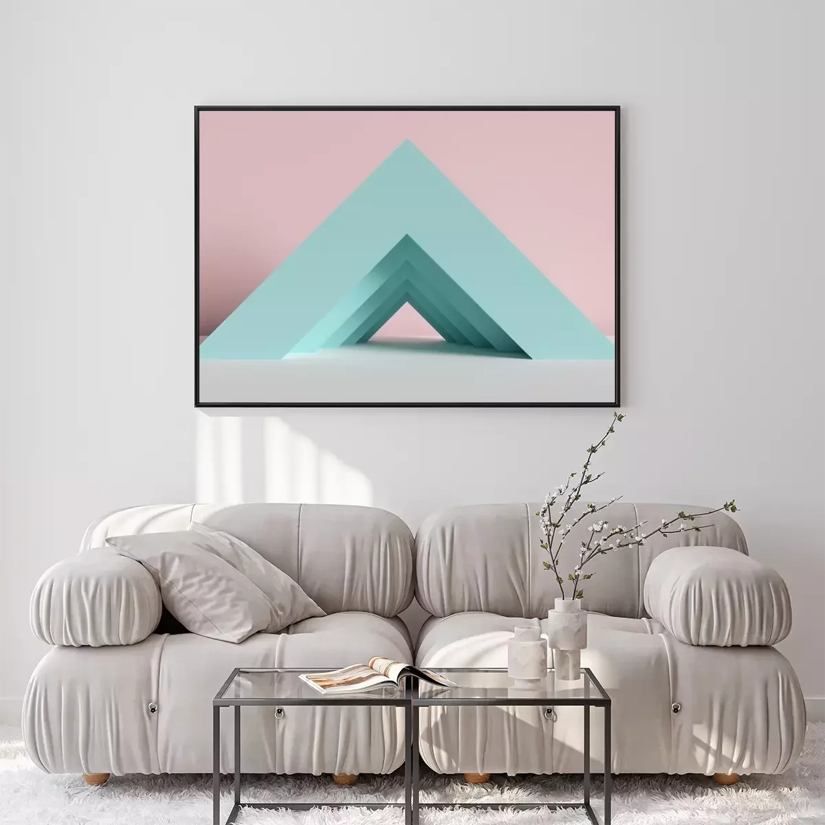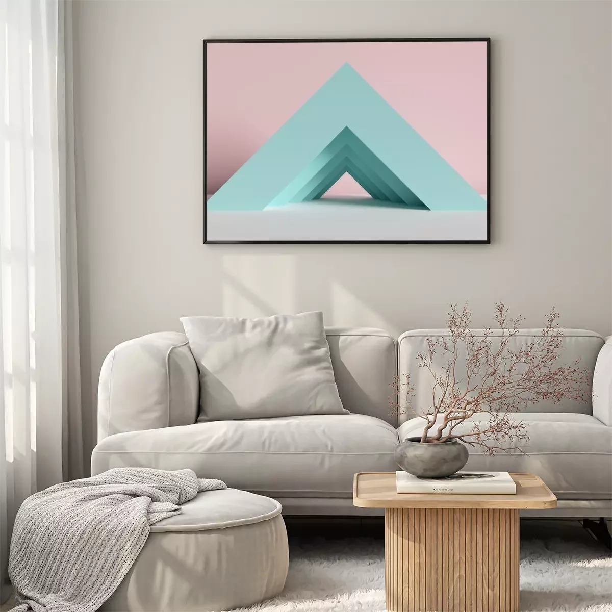 Poster  3d render, abstract background, triangle, corner, primitive geometric shapes, pastel color palette, simple mockup, minimal design elements