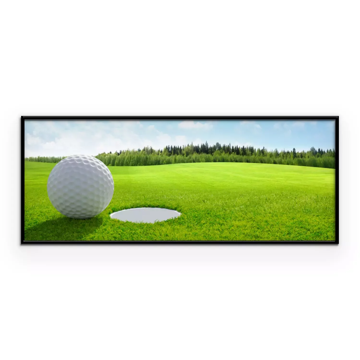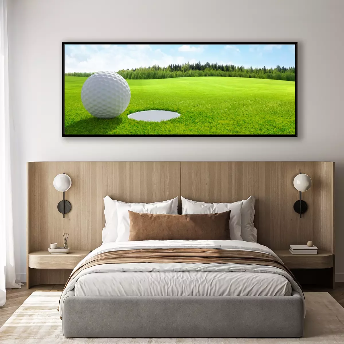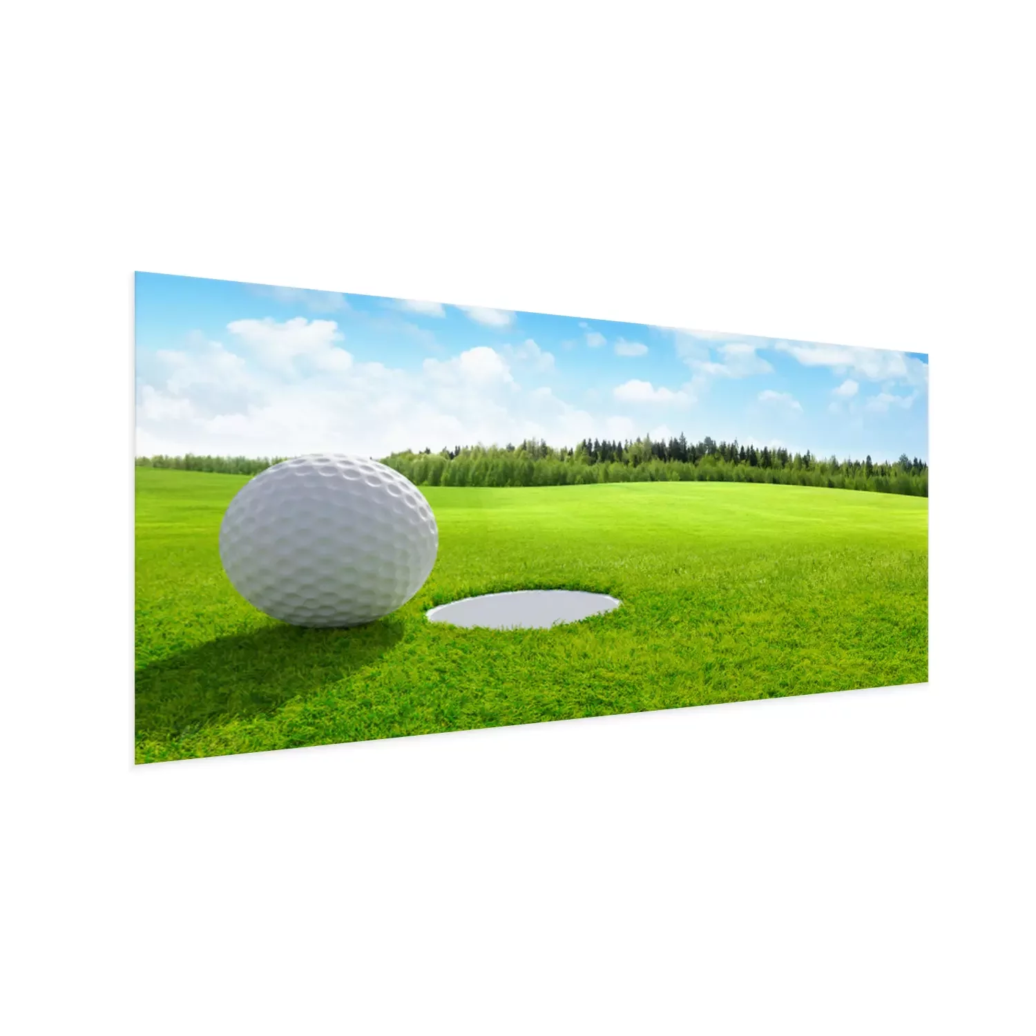 Poster : 3d render Close up of golf ball on green in golf course. sport background.