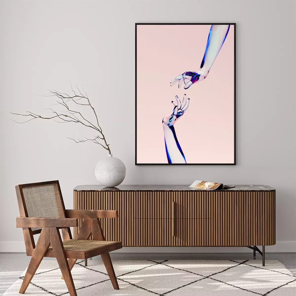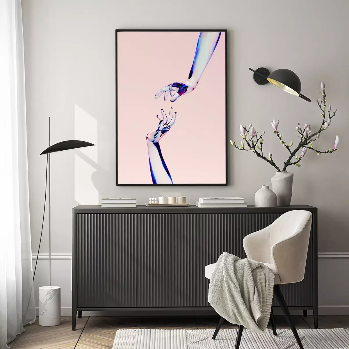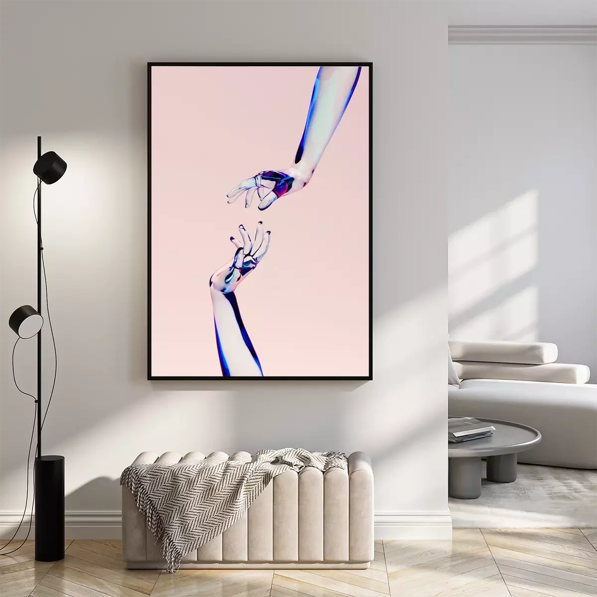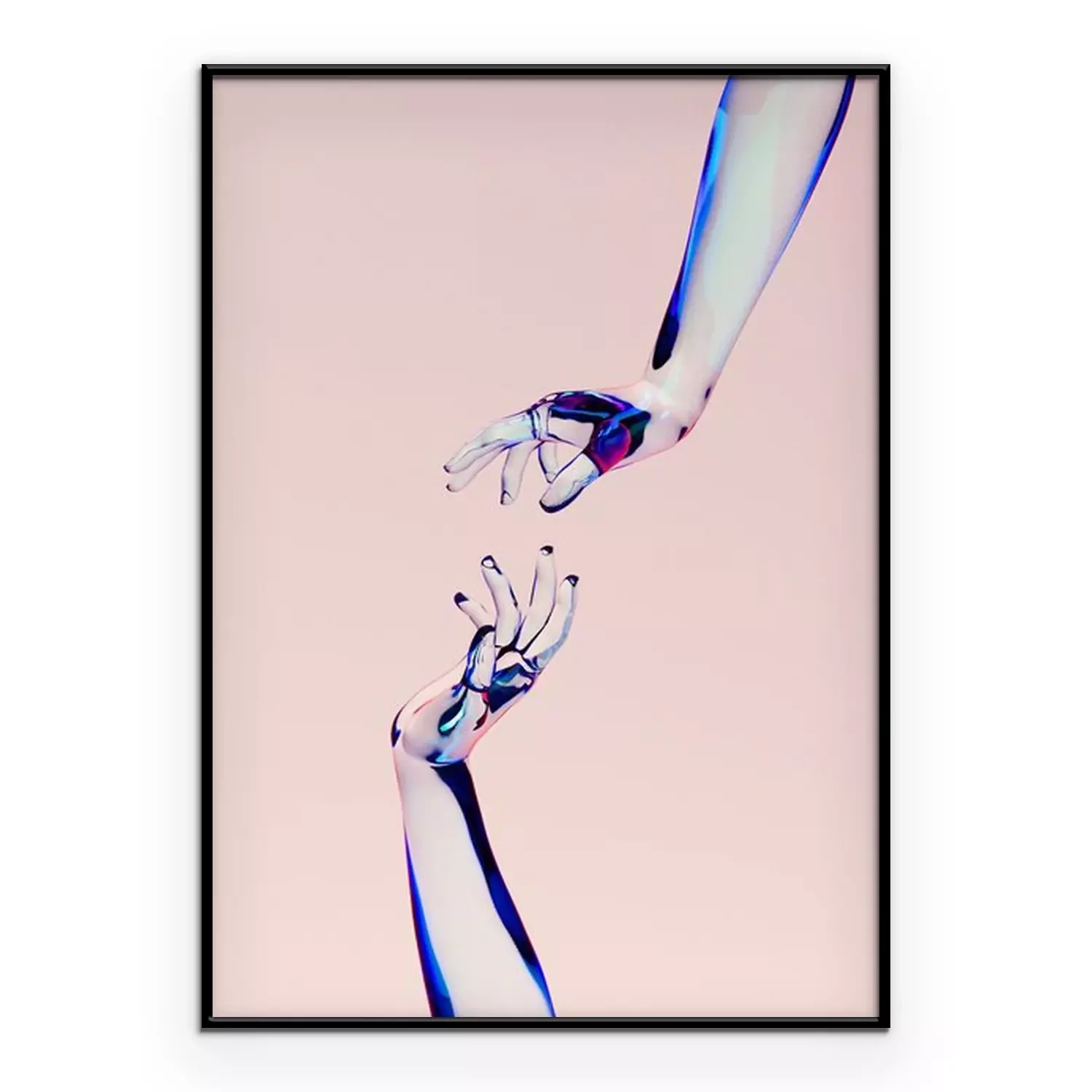 Poster : 3d rendering illustration of glass woman hands. Human body parts. Concept scene for graphic design projects. Modern look template, abstract idea. Free imagination. People artistic creative theme.