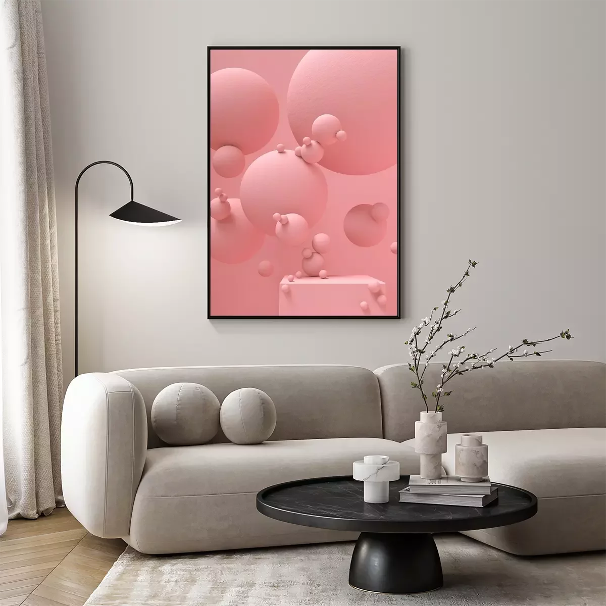 Poster  3d rendering of pink podium display minimal scene, pastel color abstract geometric shape.