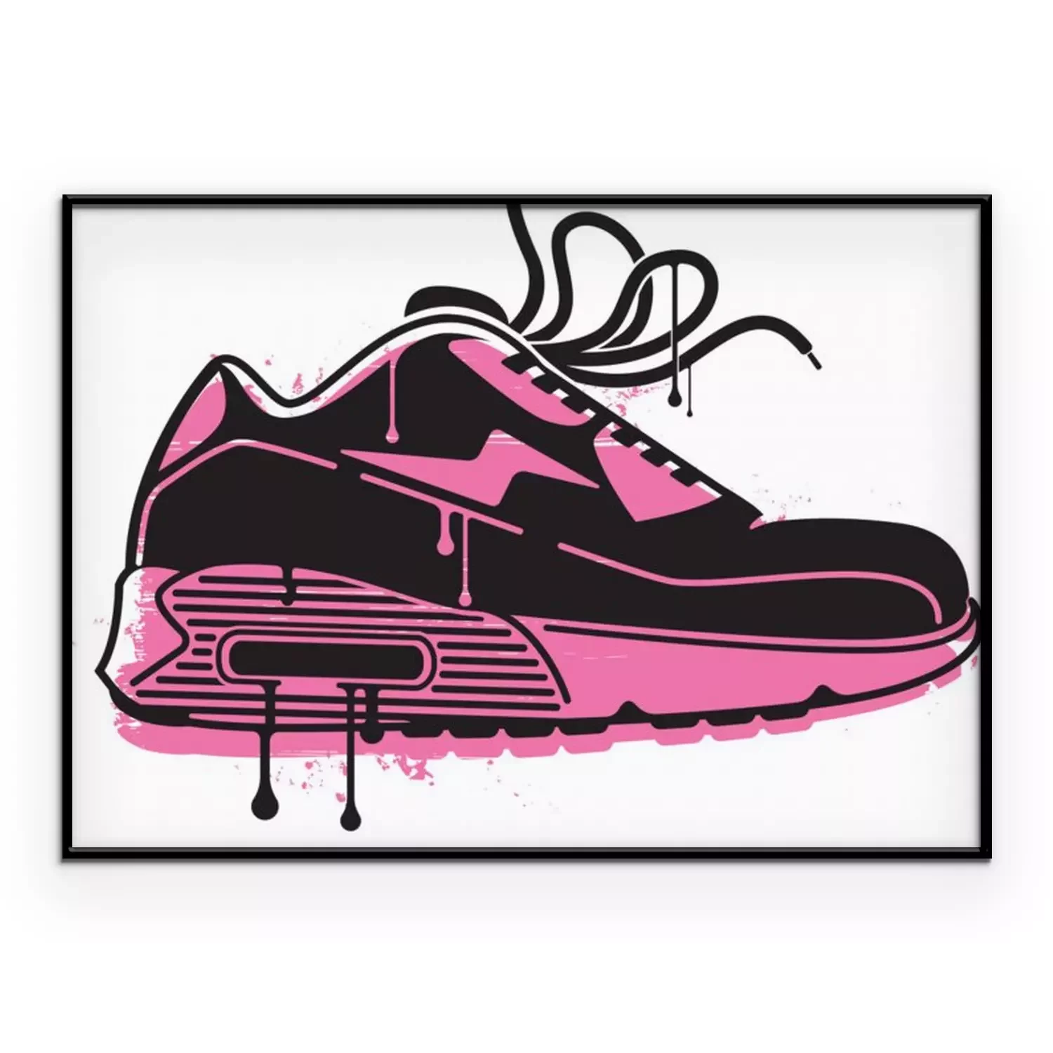 Poster : A stylised stencil image of a sneaker, with a magenta back ground layer and a black paint layer.