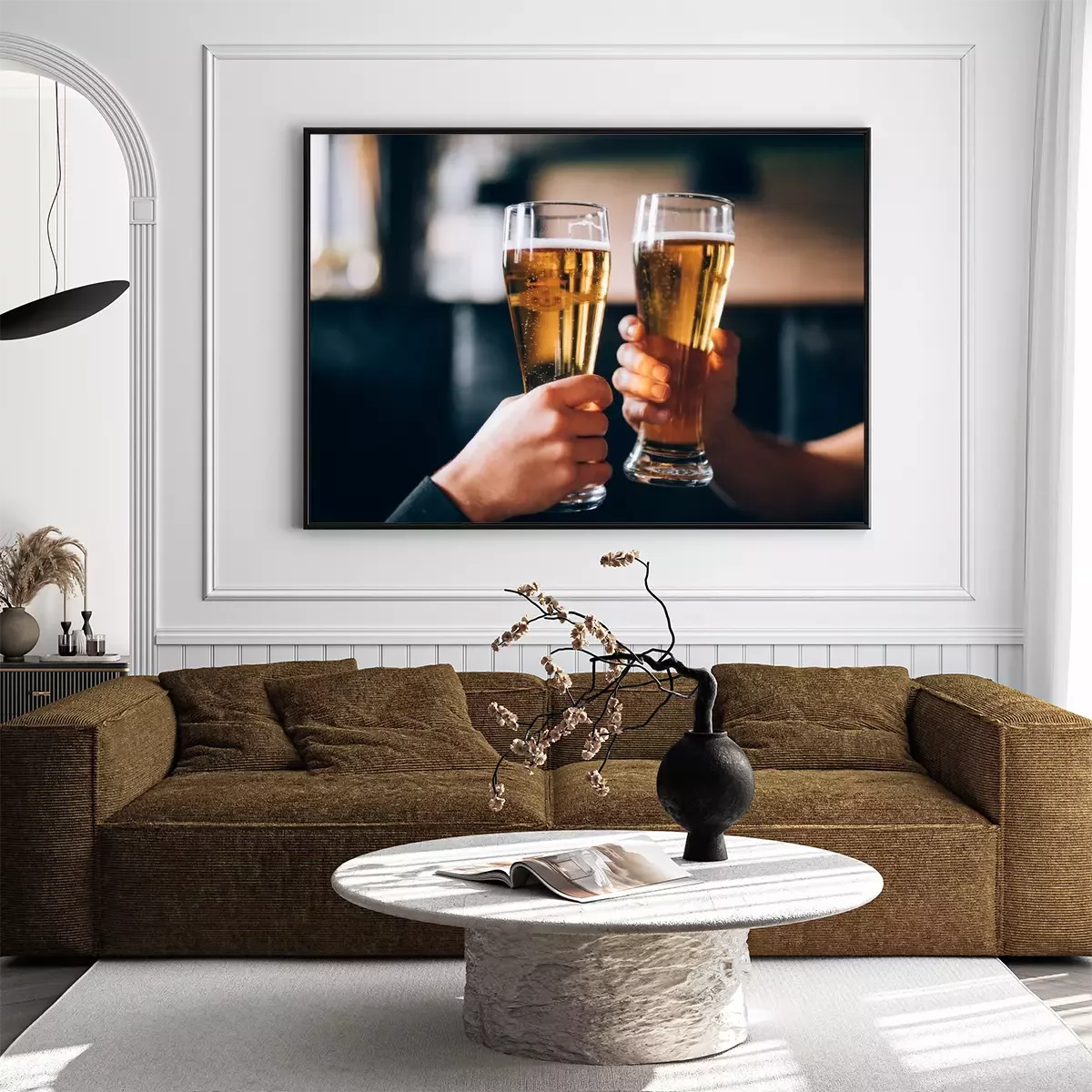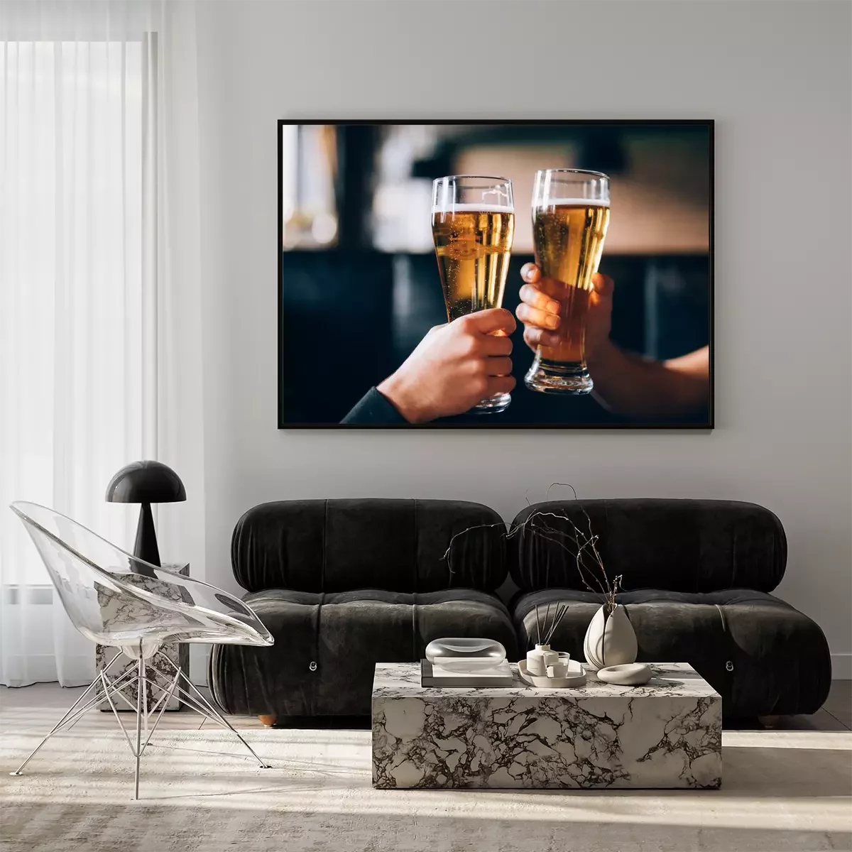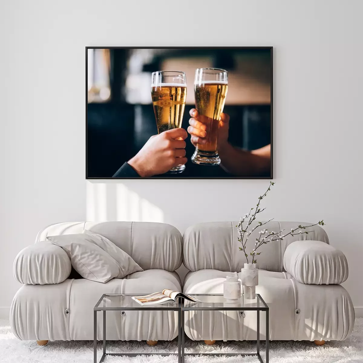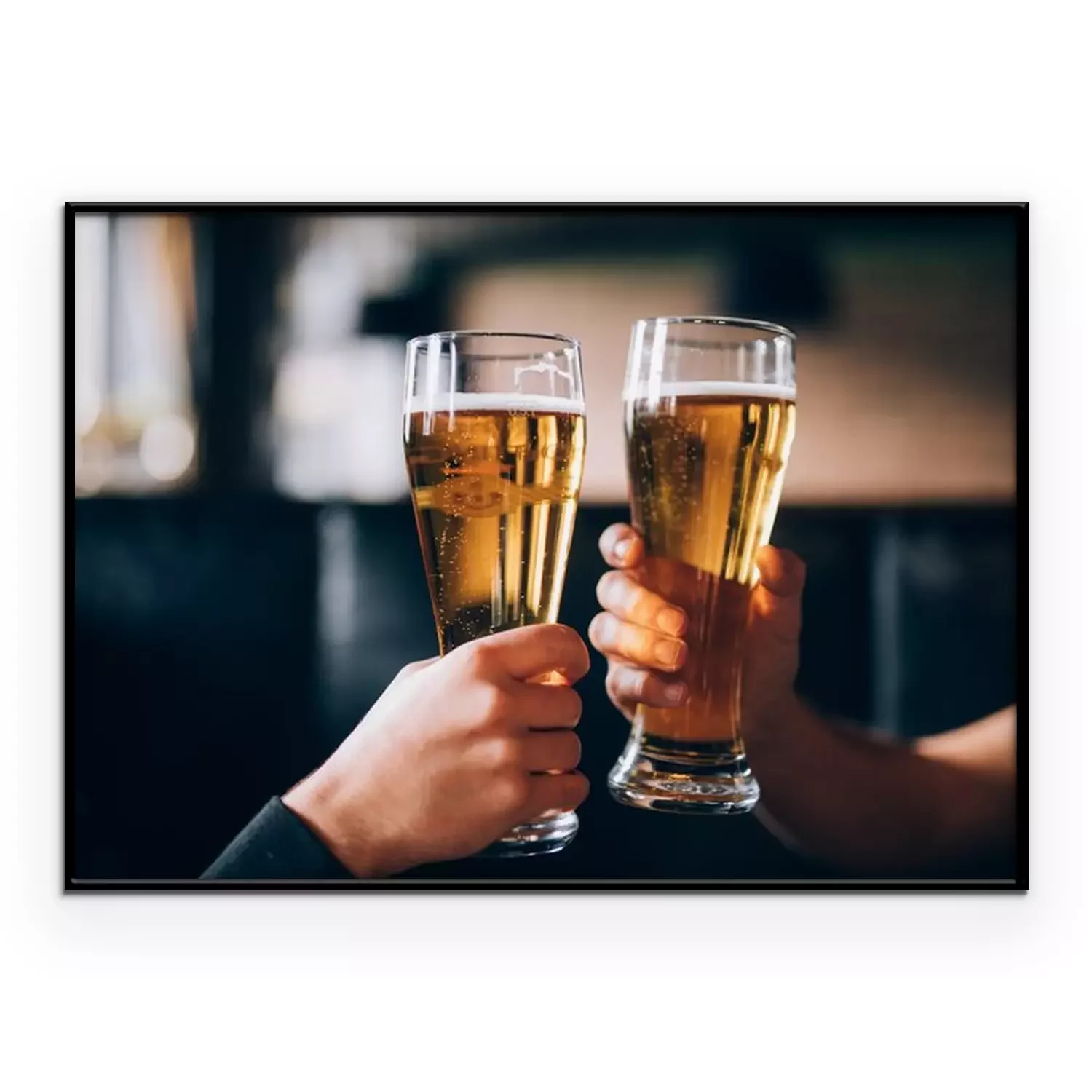 Poster  À votre santé. Gros plan, deux, hommes, chemises, grillage, bière, barre, compteur