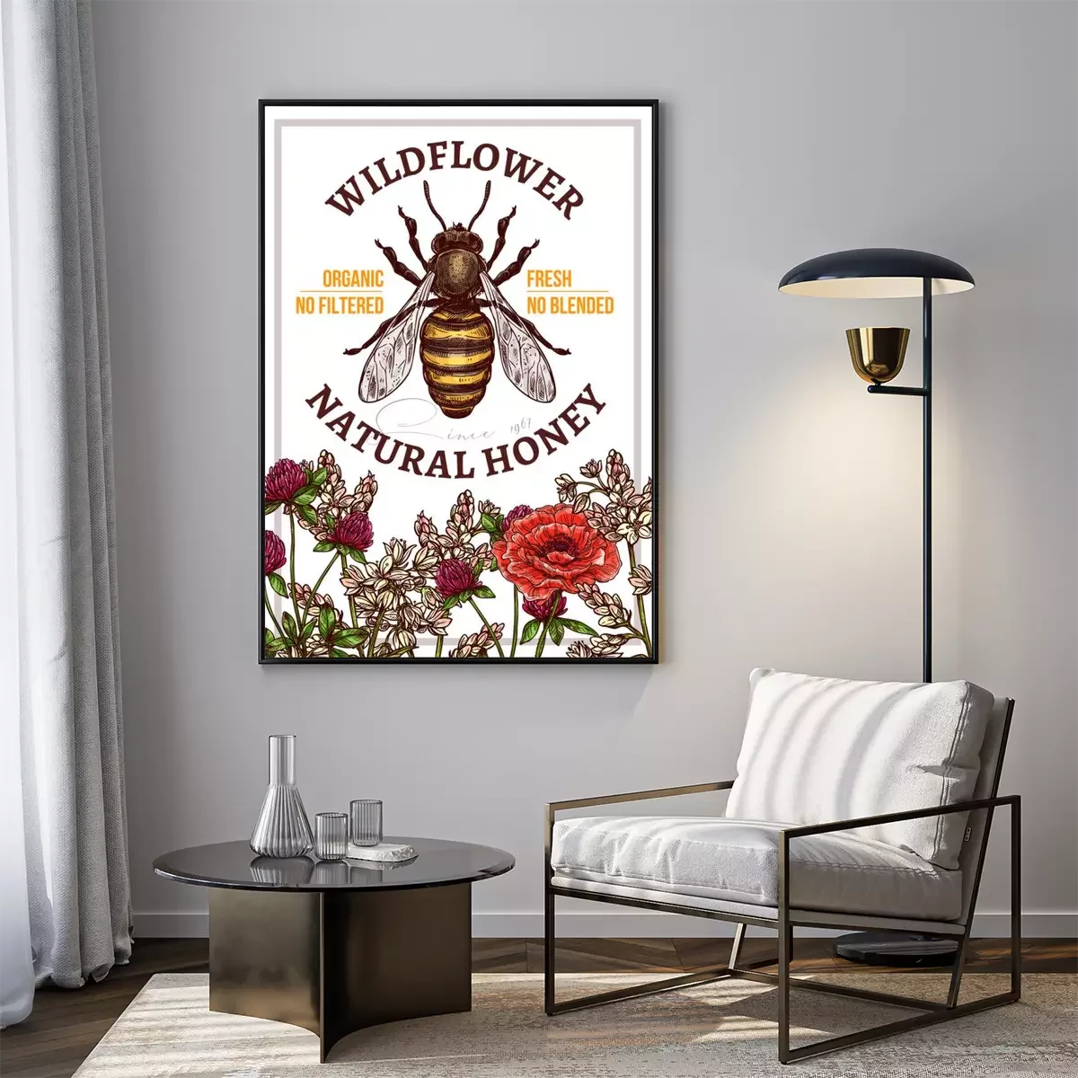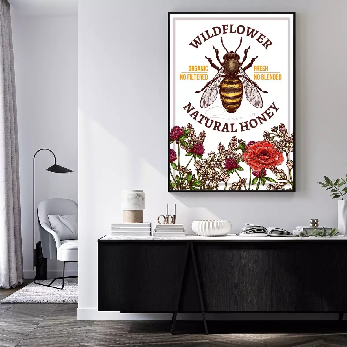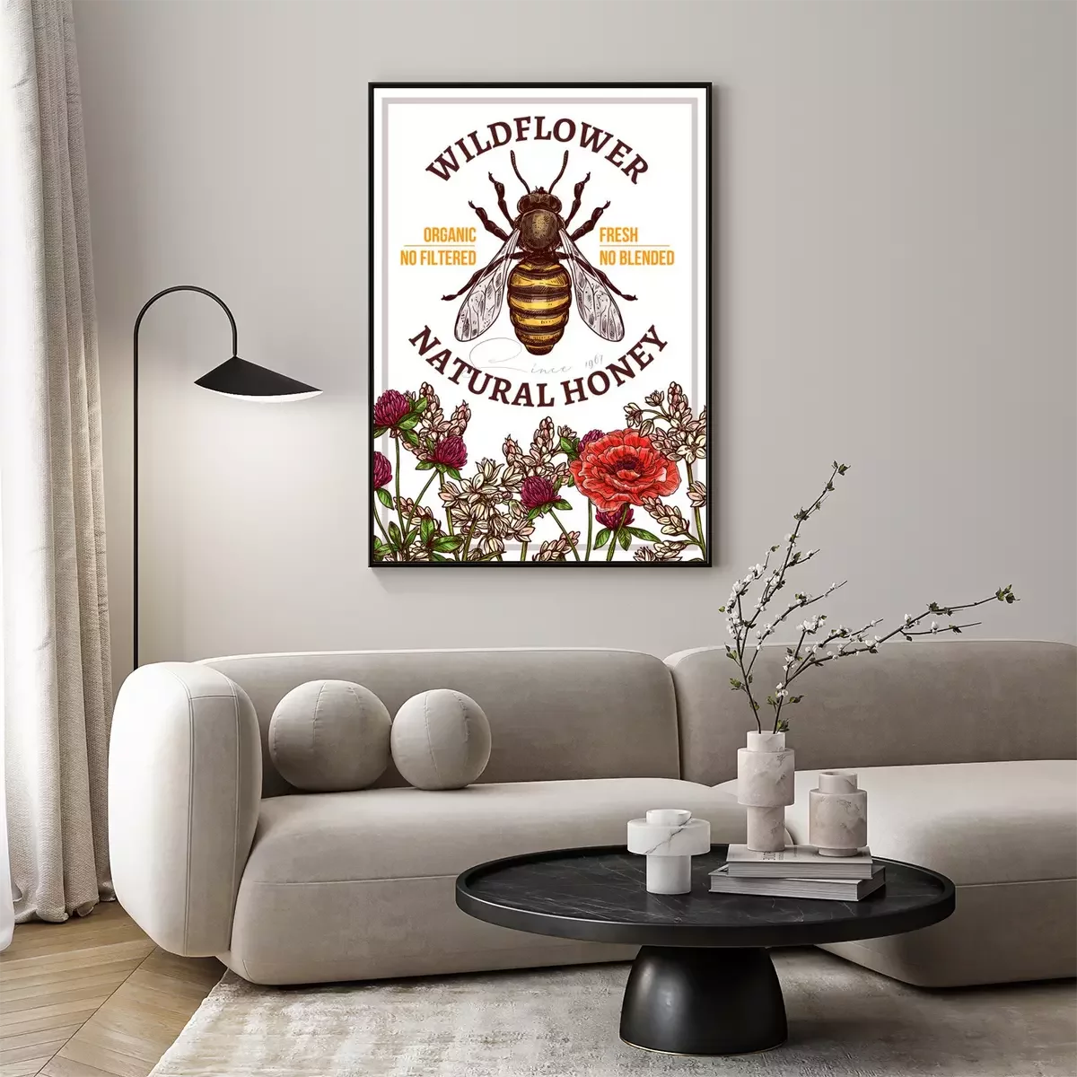 Poster  Abeille, coquelicots et autres fleurs sur le graphique