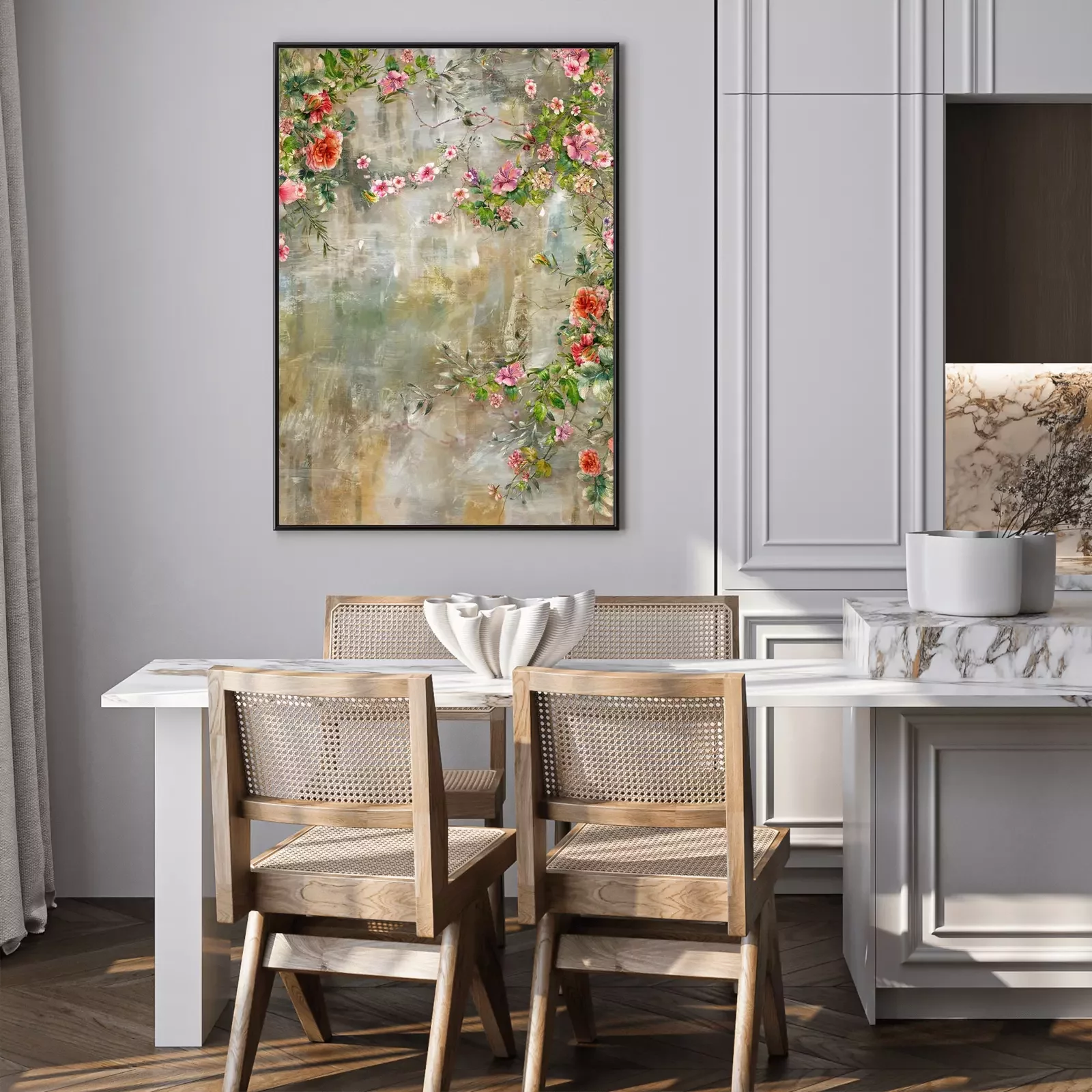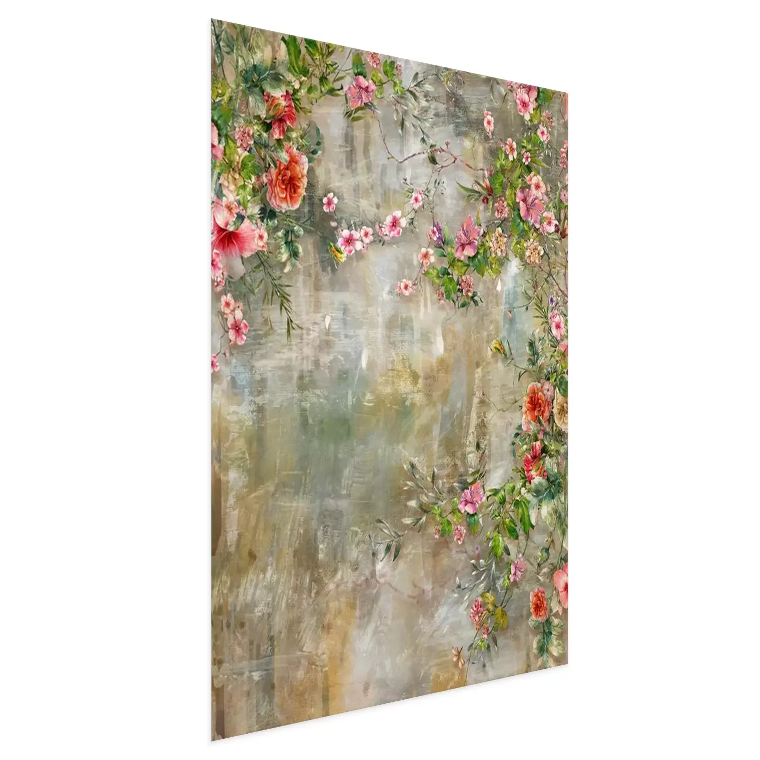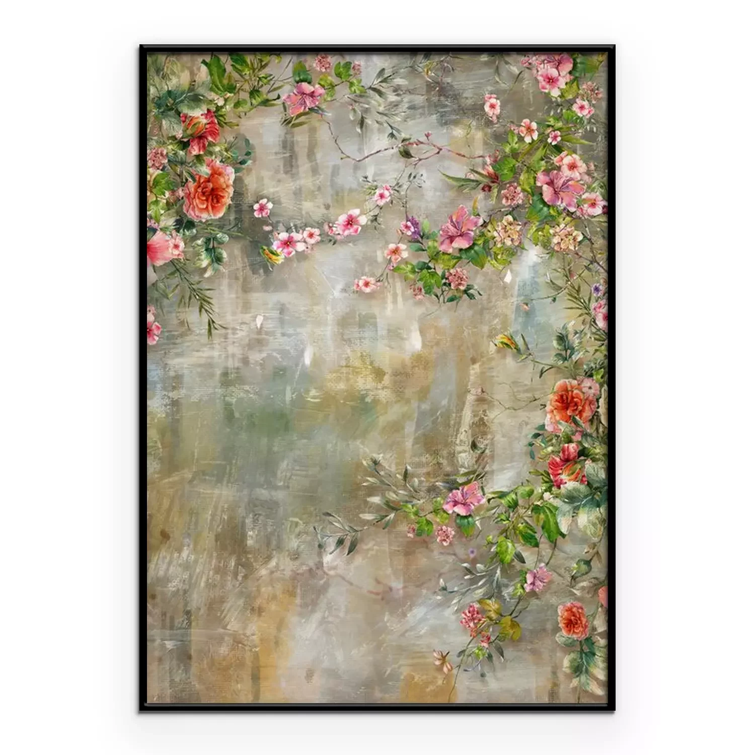 Poster : Abstract art colorful flowers painting. Spring multicolored illustration.