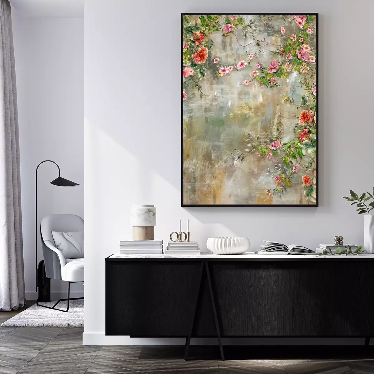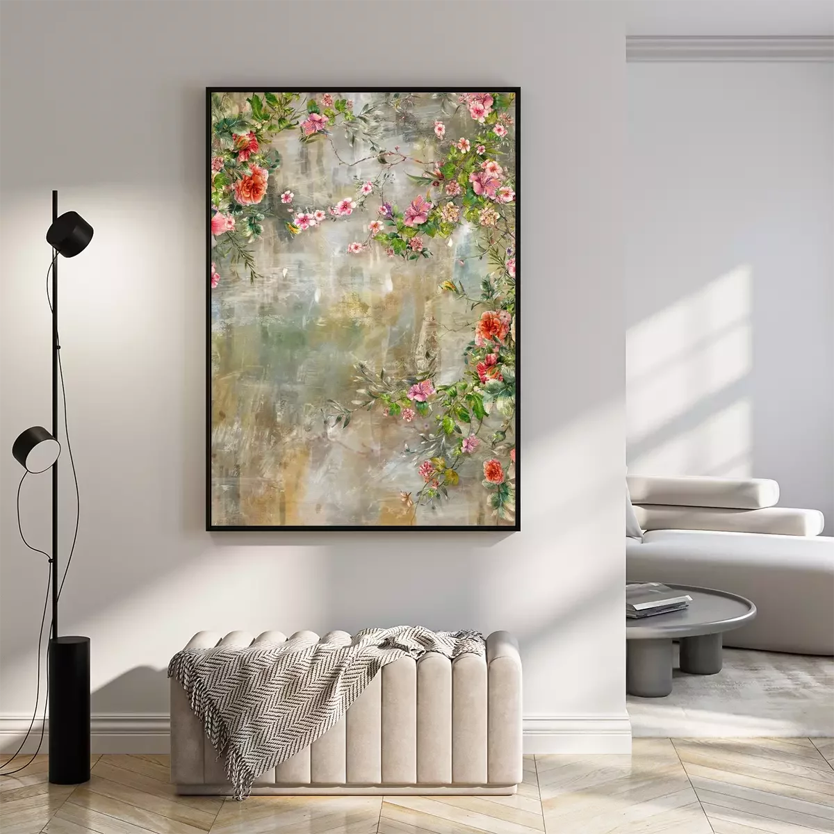 Poster  Abstract art colorful flowers  painting. Spring multicolored illustration.