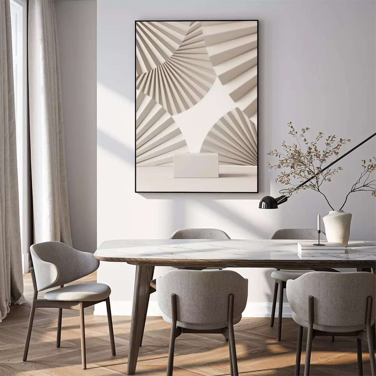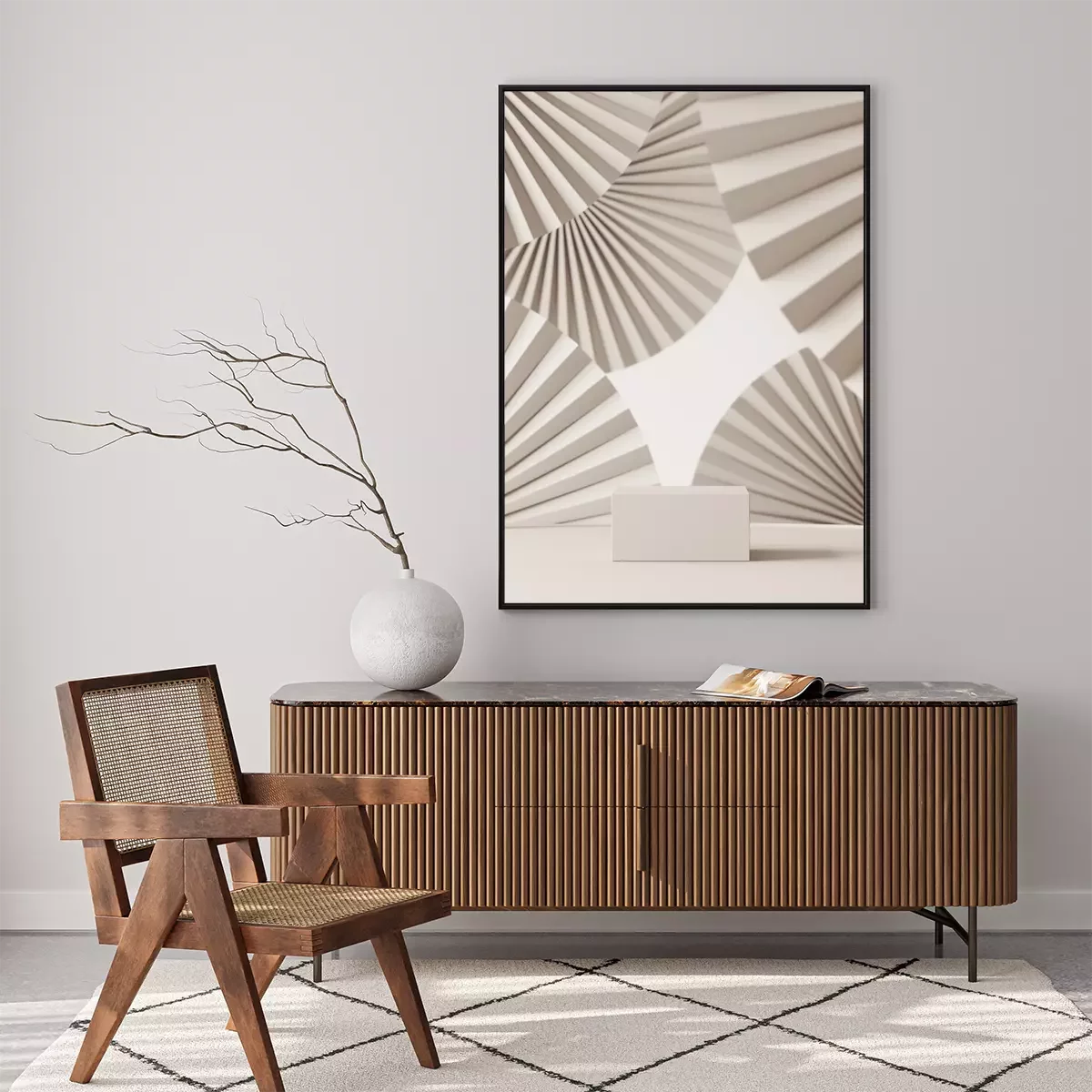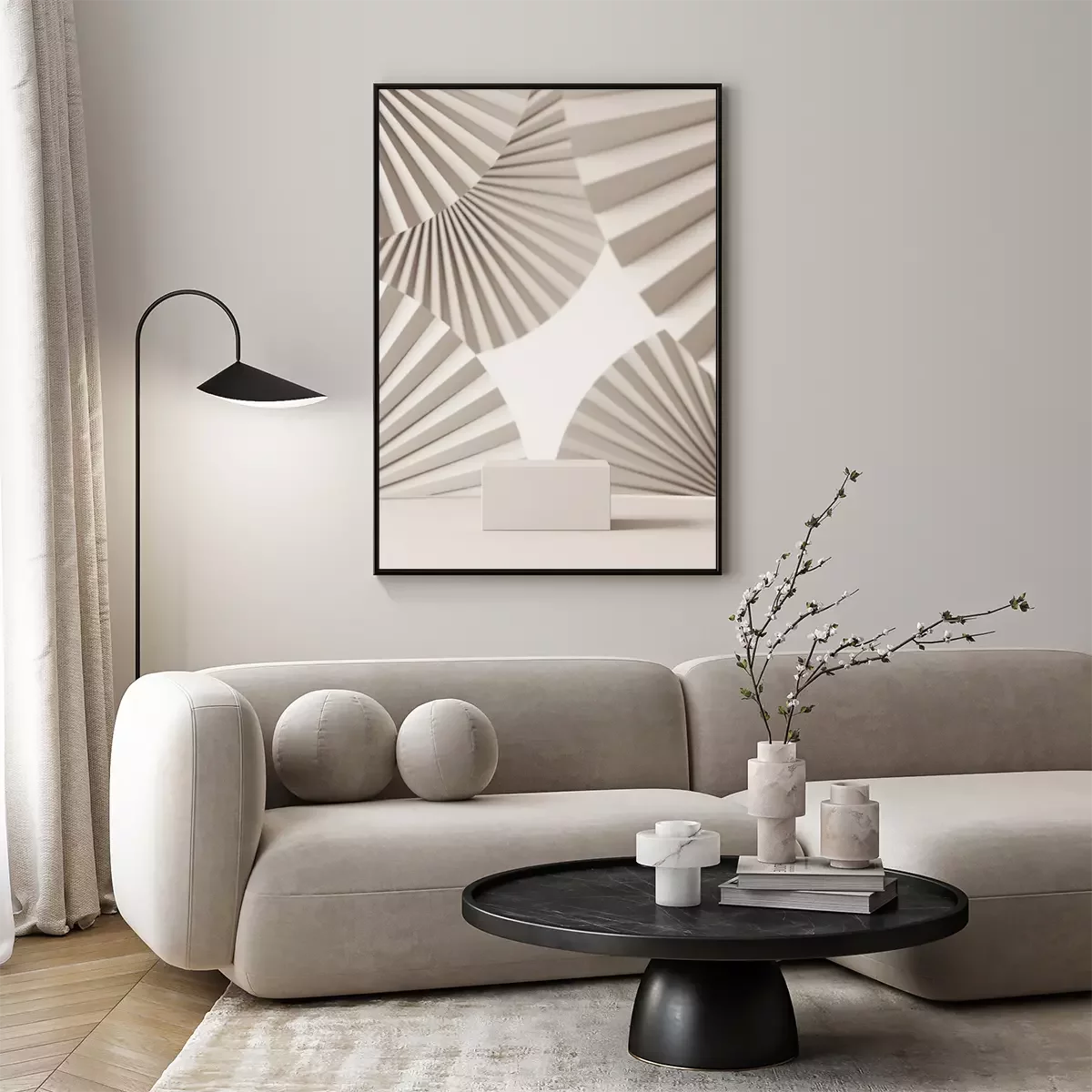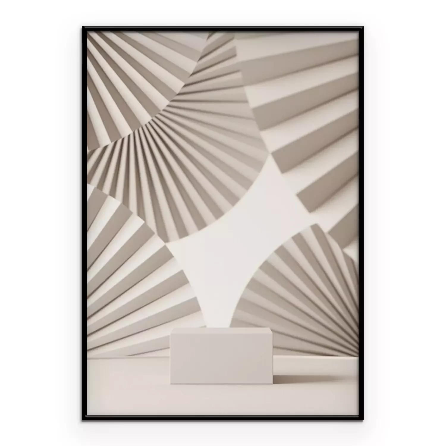 Poster : Abstract background for branding, identity and packaging presentation. Podium on white paper fan medallion background. 3d rendering illustration.