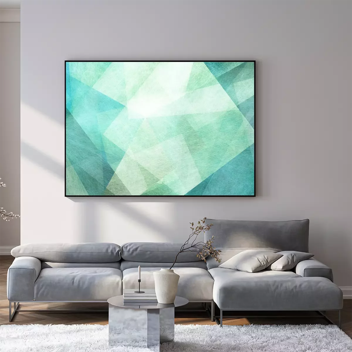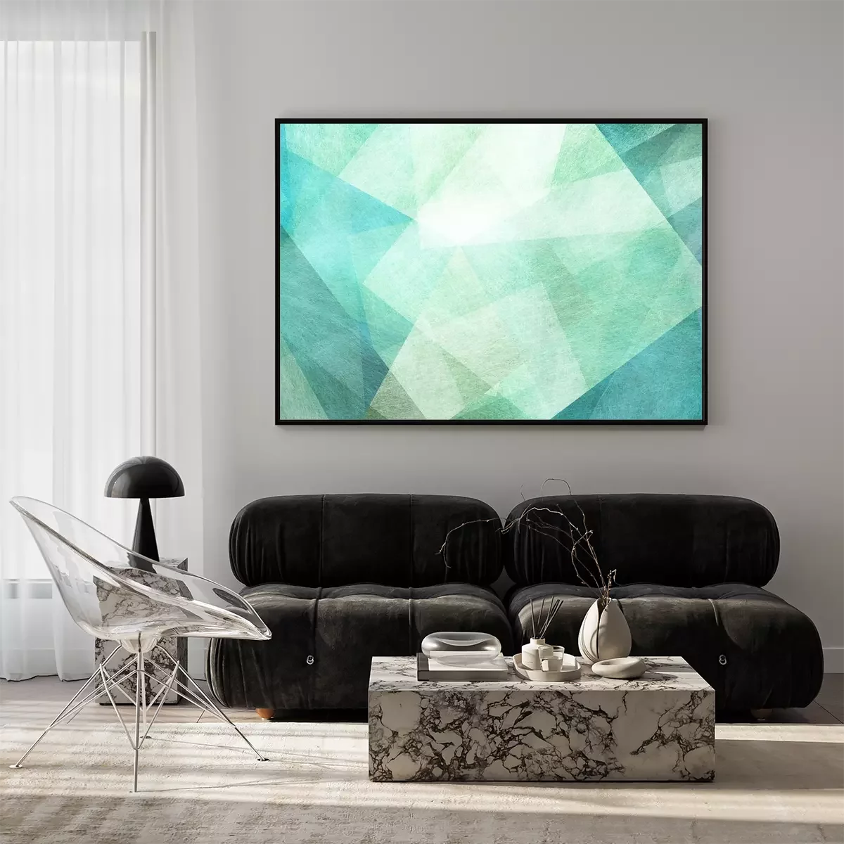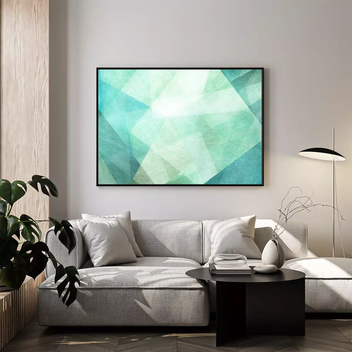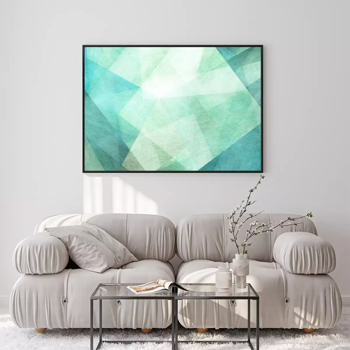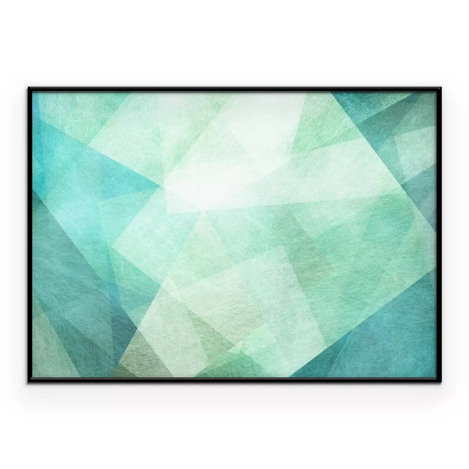 Poster : abstract blue green background with textured triangle shapes in fun geometric pattern, teal and white color texture in modern art design