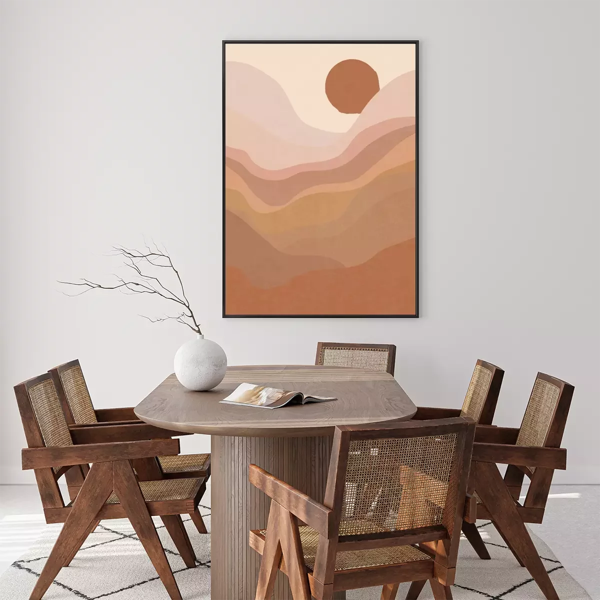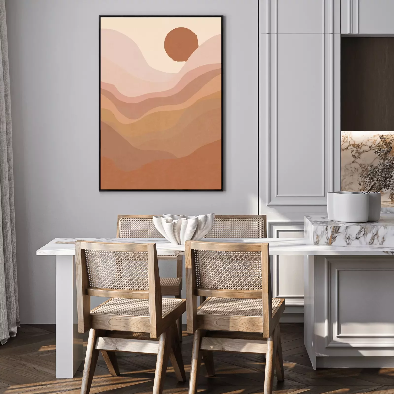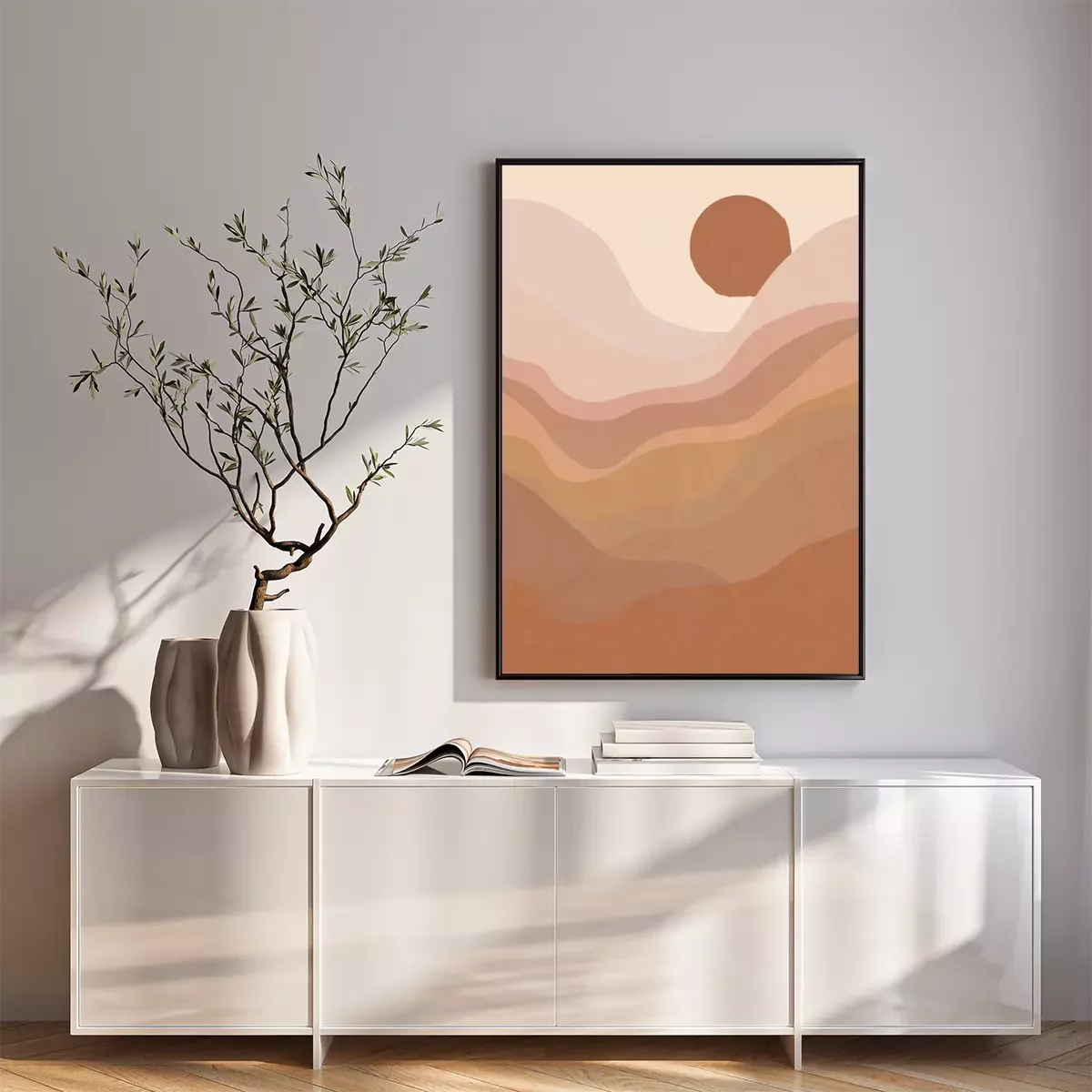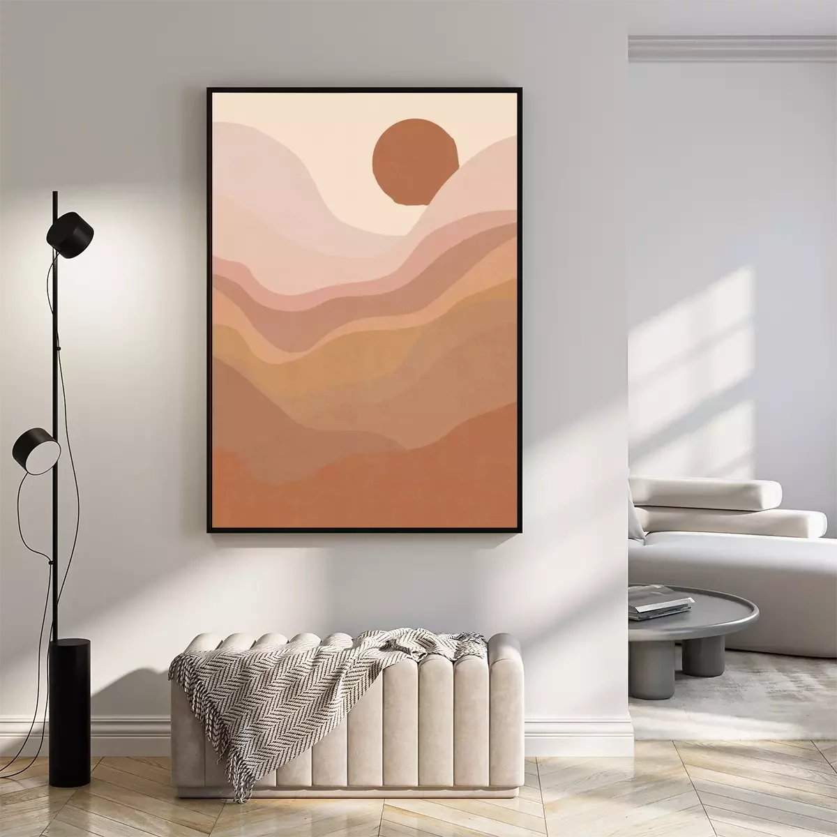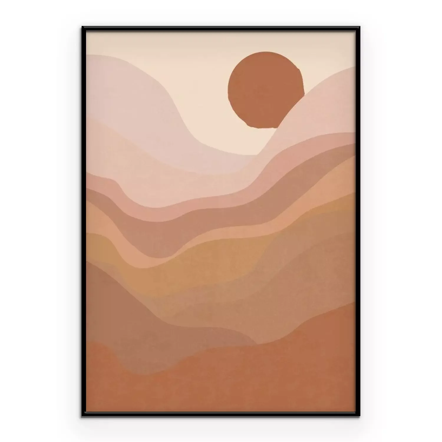 Poster : Abstract contemporary landscape background with sunrise. Boho wall decor. Mid century flat modern minimalist art print vector illustration for wall decoration, home gallery, postcard, brochure cover