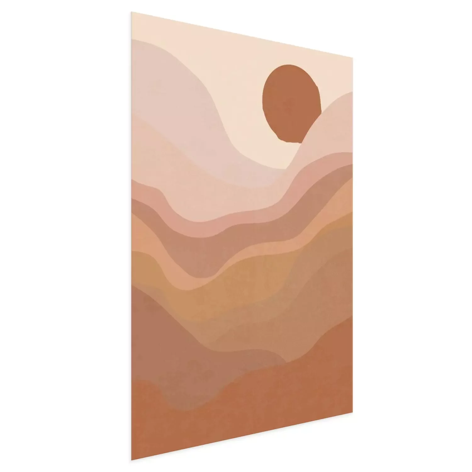 Poster  Abstract contemporary landscape background with sunrise. Boho wall decor. Mid century flat modern minimalist art print vector illustration for wall decoration, home gallery, postcard, brochure cover