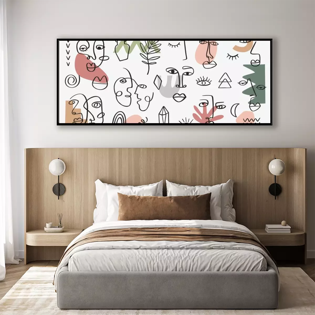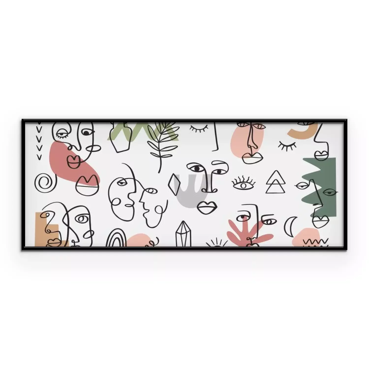 Poster : Abstract tribal woman portrait set in continuous line art. Fashion contemporary elements with ethnic female faces, leaves, flowers, shapes in modern Ink painting style. Minimalistic aesthetic concept