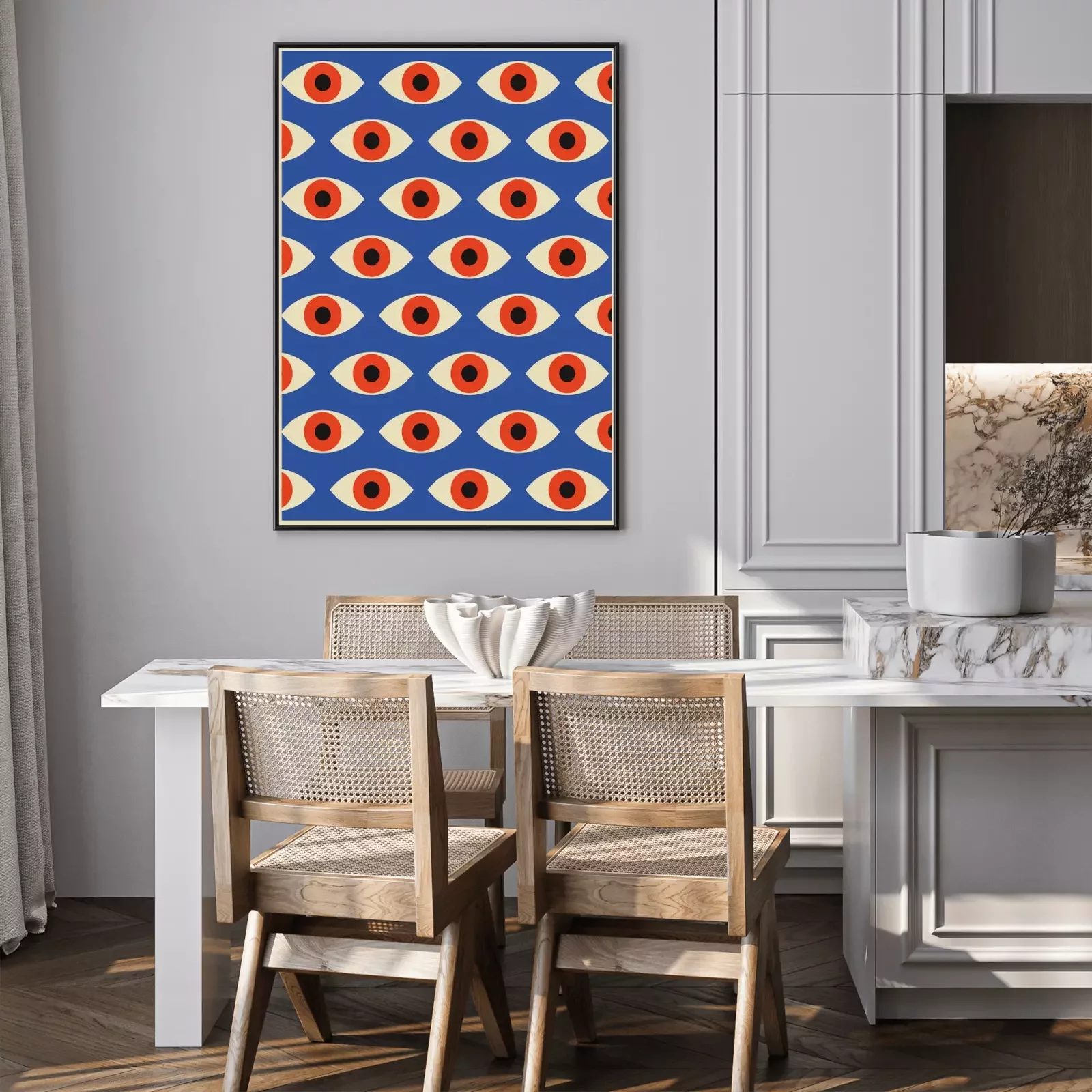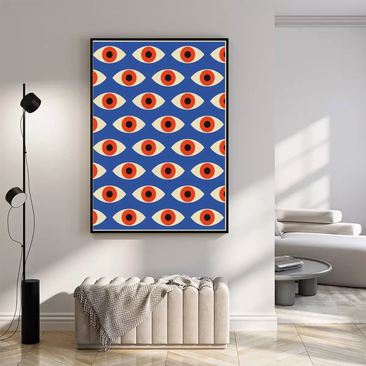 Abstraction moderniste rouge et bleue dans le style bauhaus