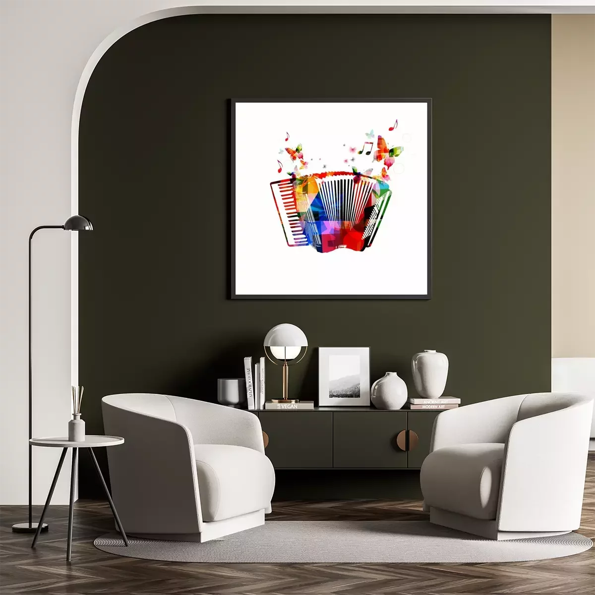 Poster  Accordéon avec papillons dans un style artistique