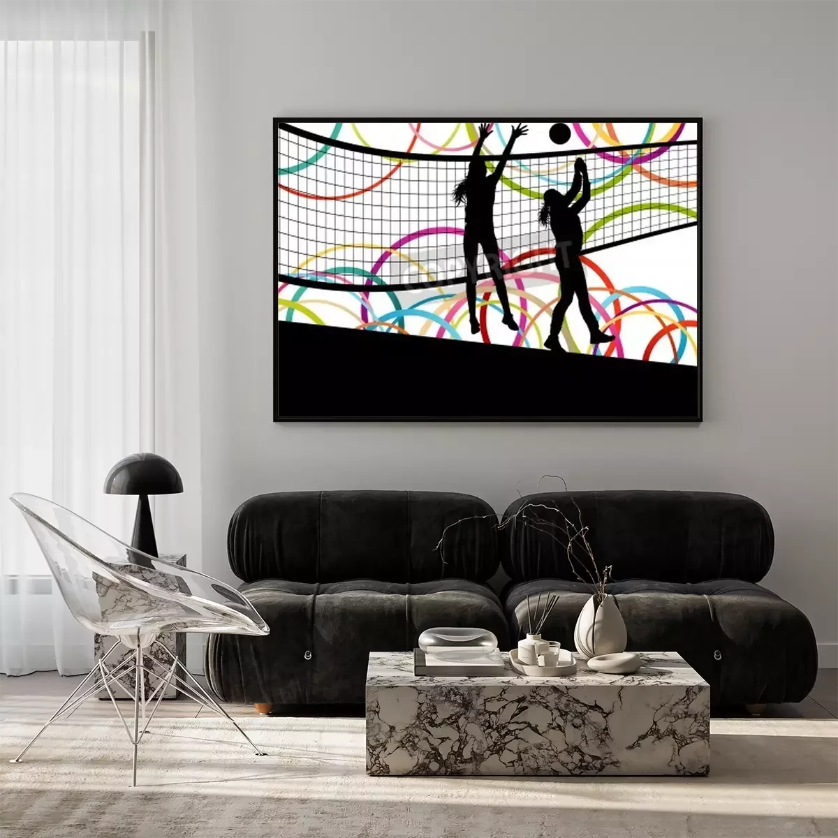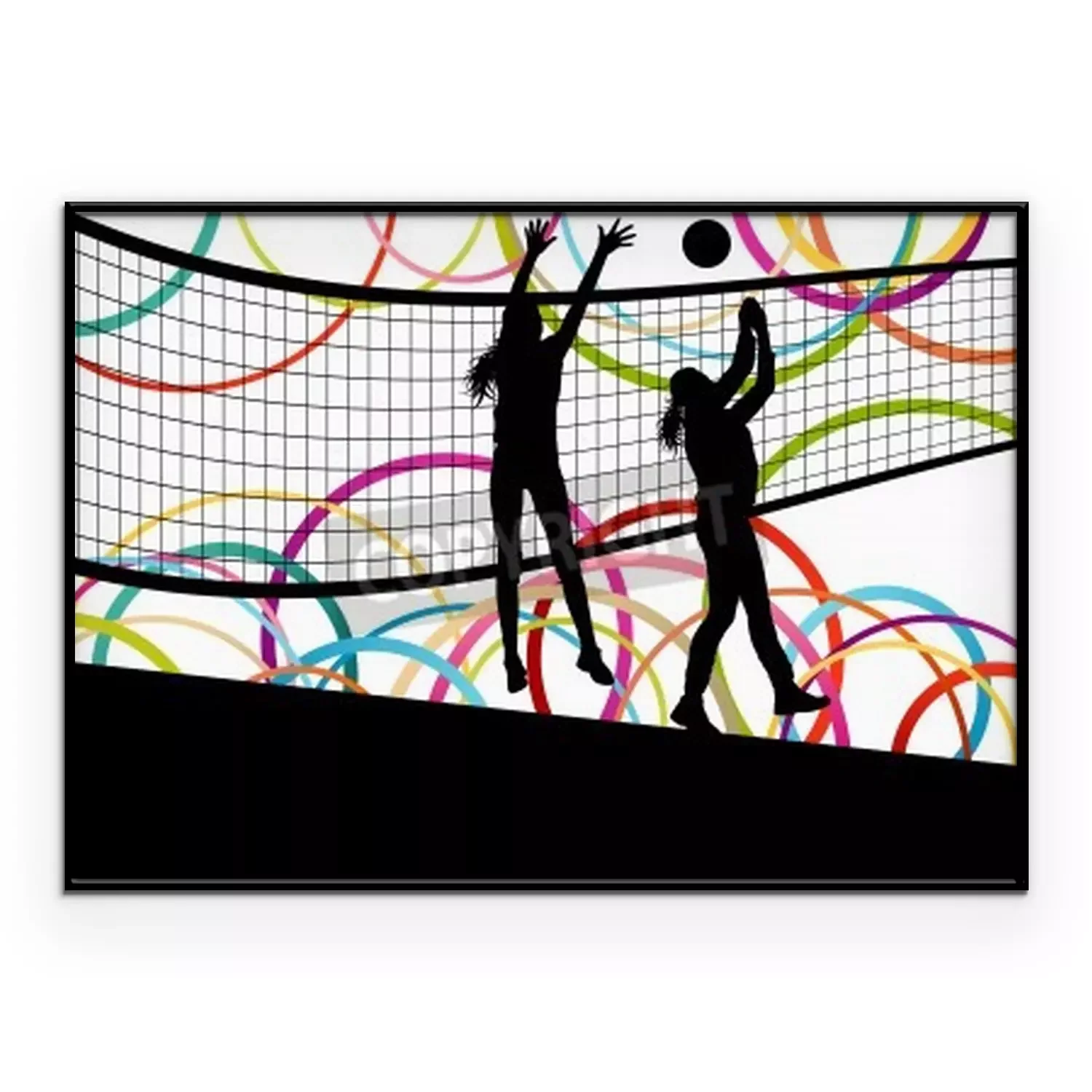 Poster : Active young women volleyball player sport silhouettes in abstract color background illustration vector