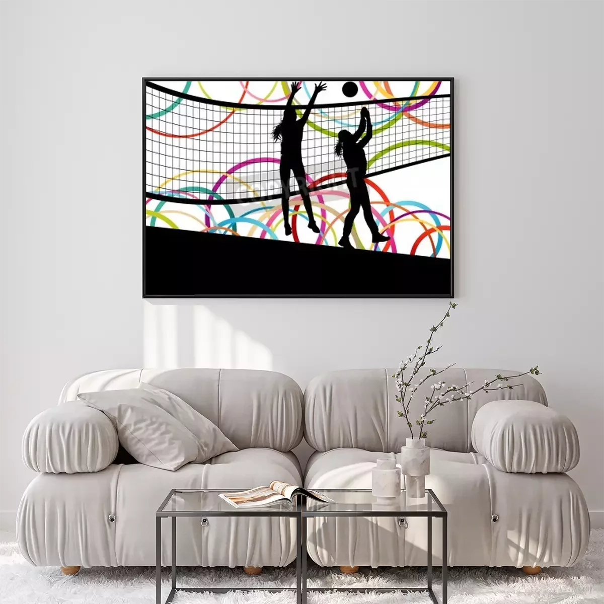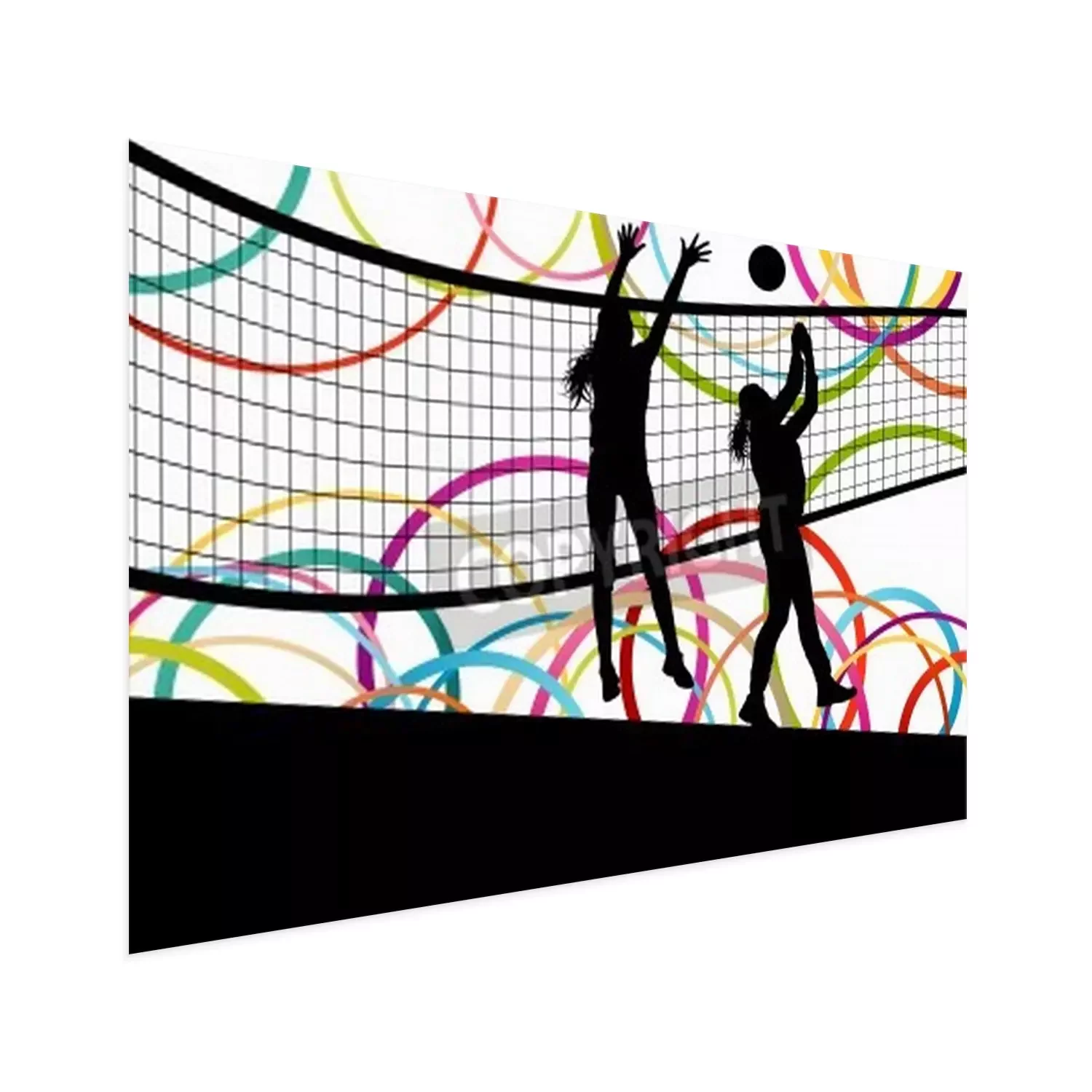 Poster  Active young women volleyball player sport silhouettes in abstract color background illustration vector