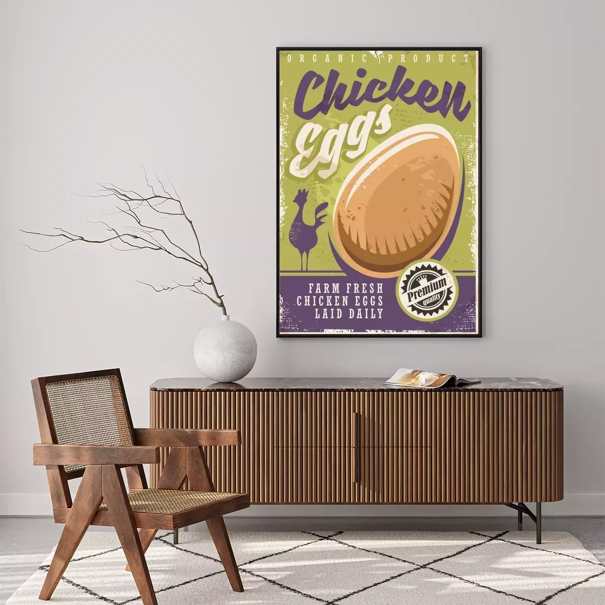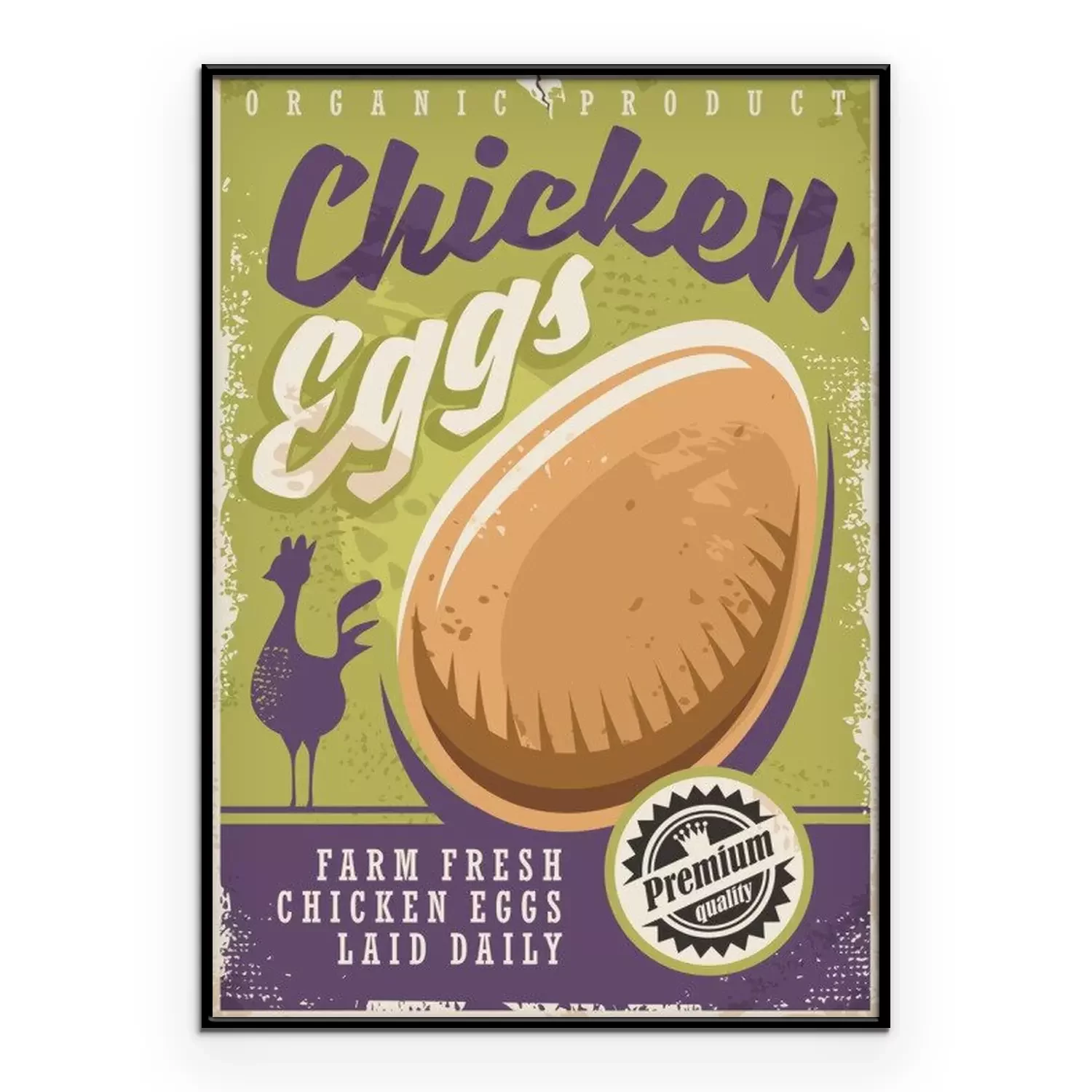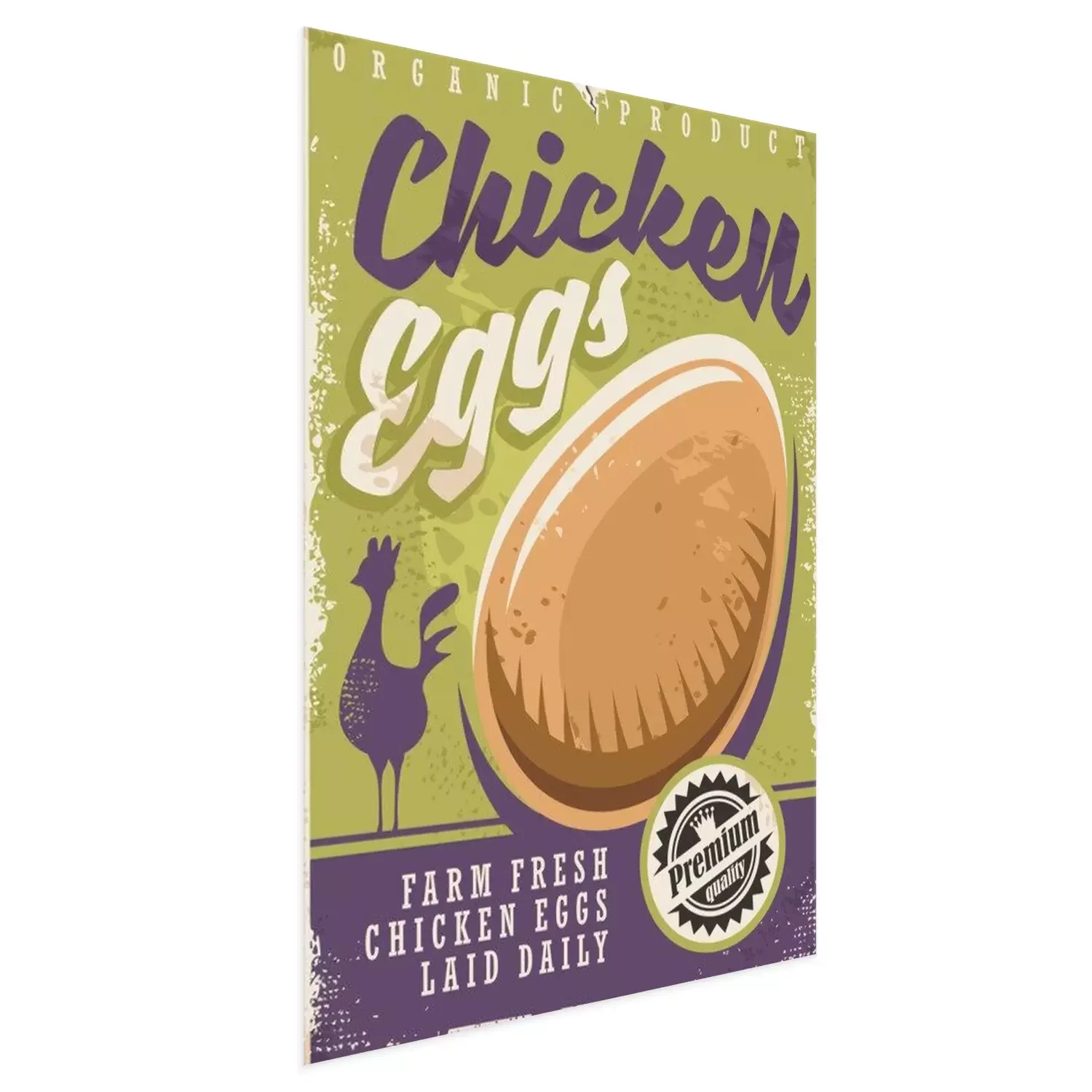 Poster : Affiche d'oeufs de poulet frais Farm avec silhouette de poulet et graphique oeuf bio