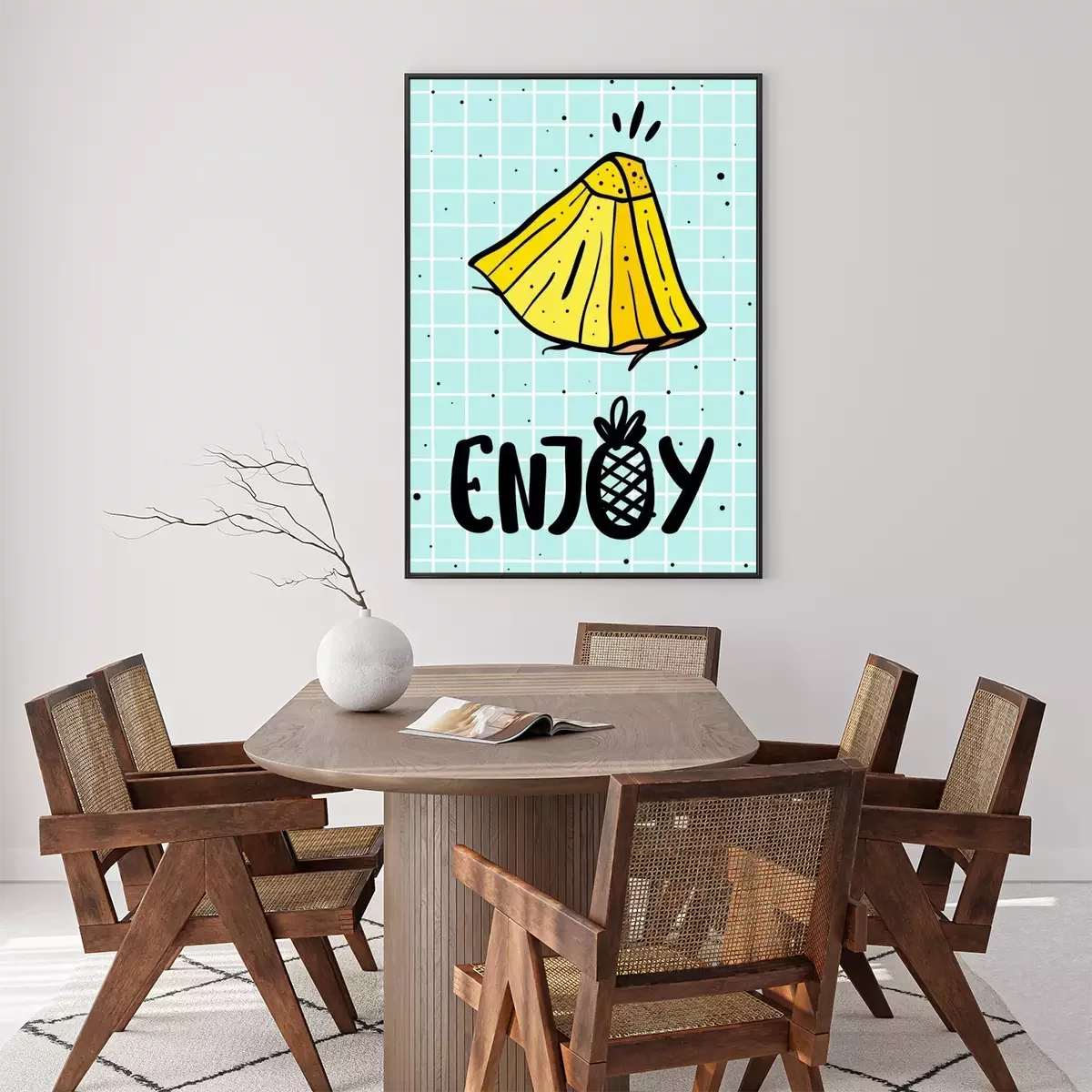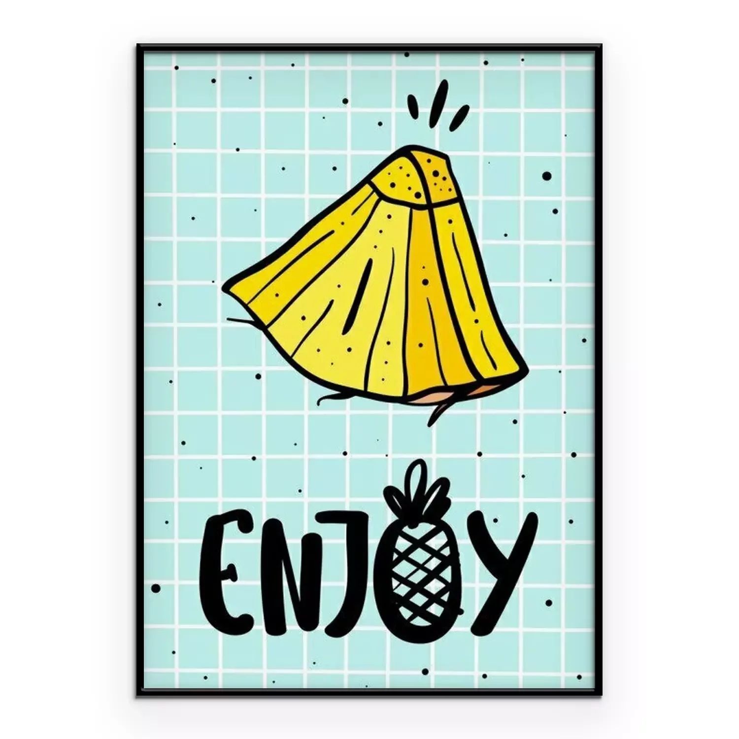 Poster  affiche de l'été avec ananas et lettrage dessiné à la main