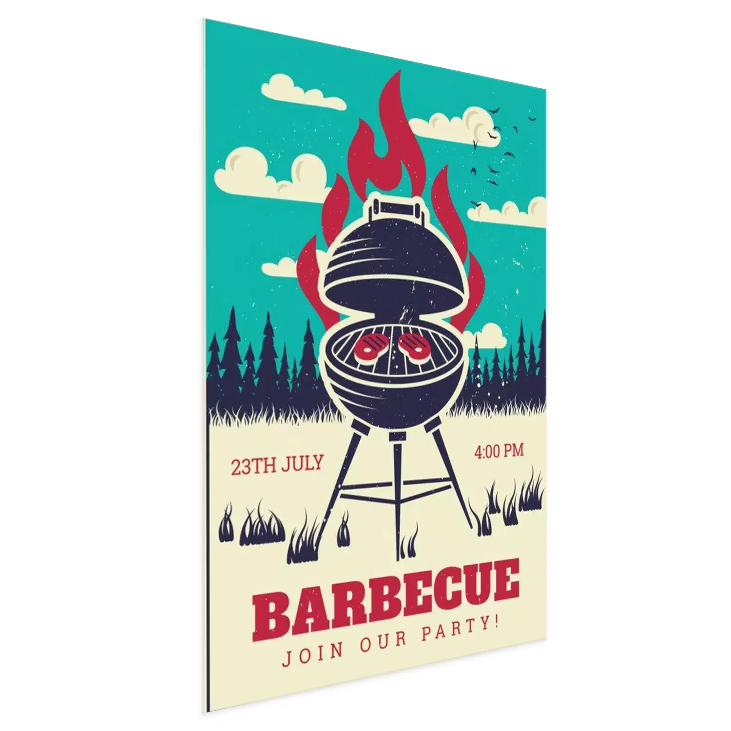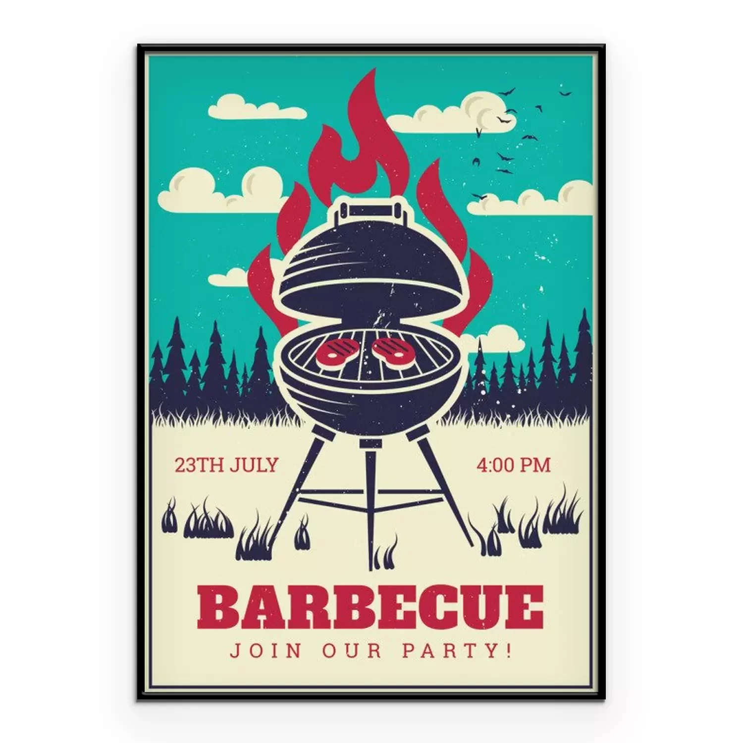 Poster  Affiche de soirée barbecue vintage. Hamburgers grillés délicieux, carte d'invitation vecteur barbecue familial