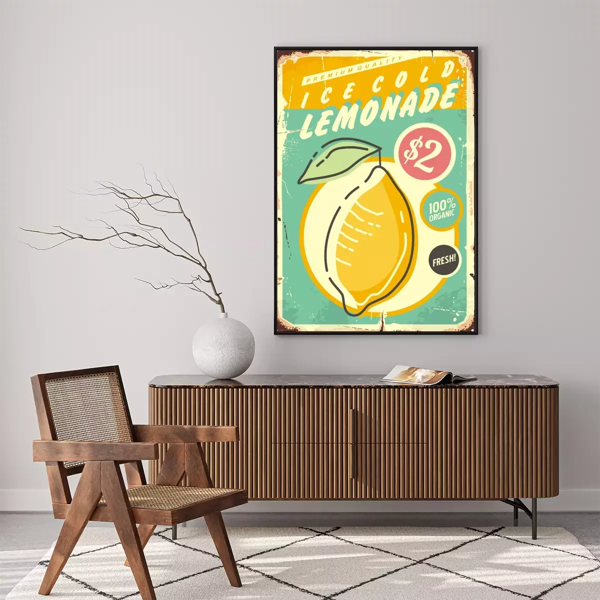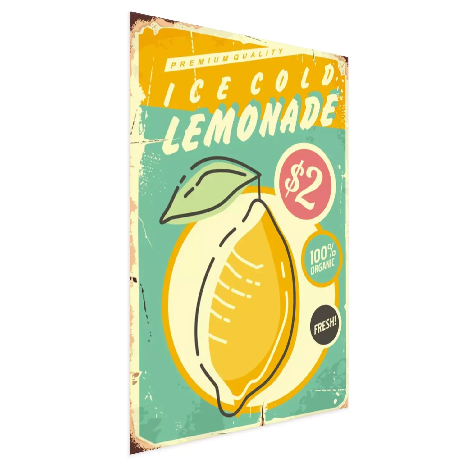 Poster : Affiche publicitaire promotionnelle de limonade avec des fruits de citron frais et juteux. Vintage signe pour la limonade glacée.