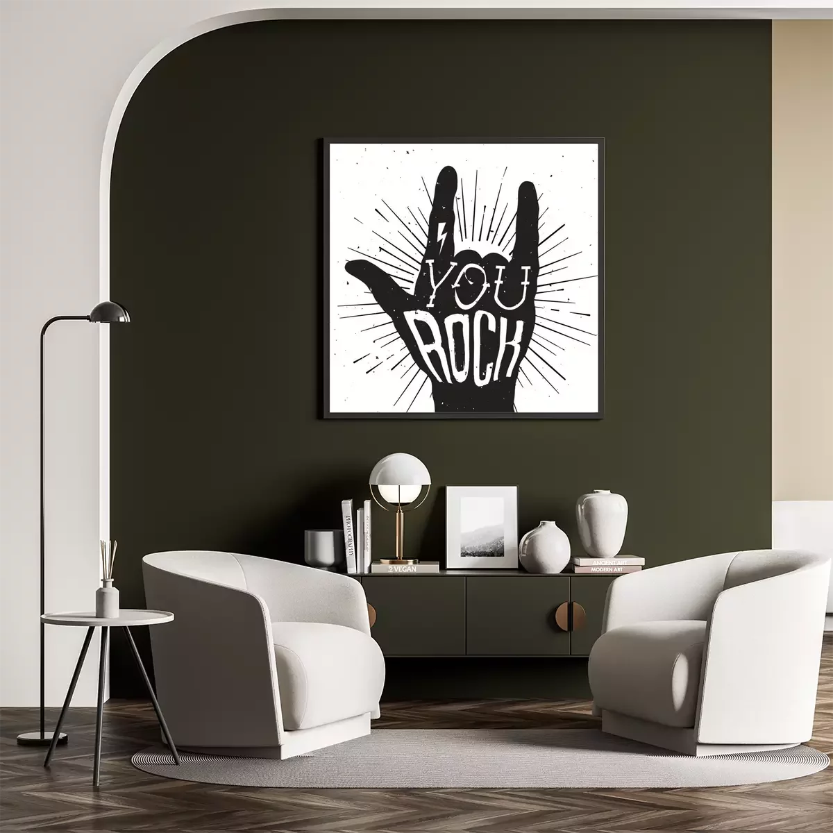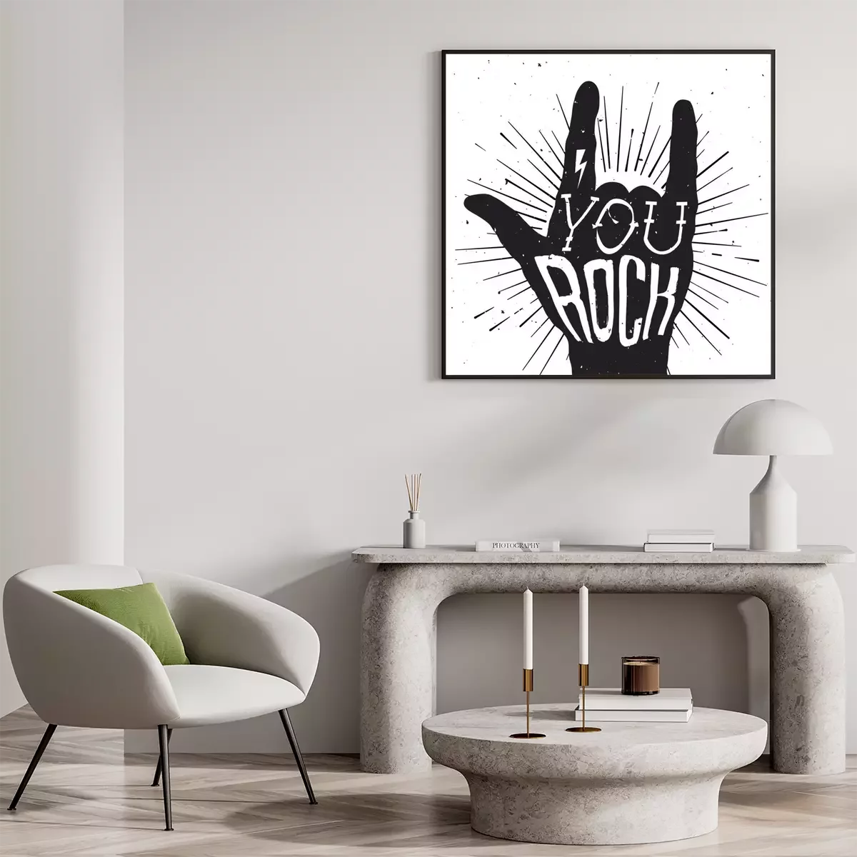 Poster : Affligé, noir, blanc, affiche, rocher, main, signe, vous, R