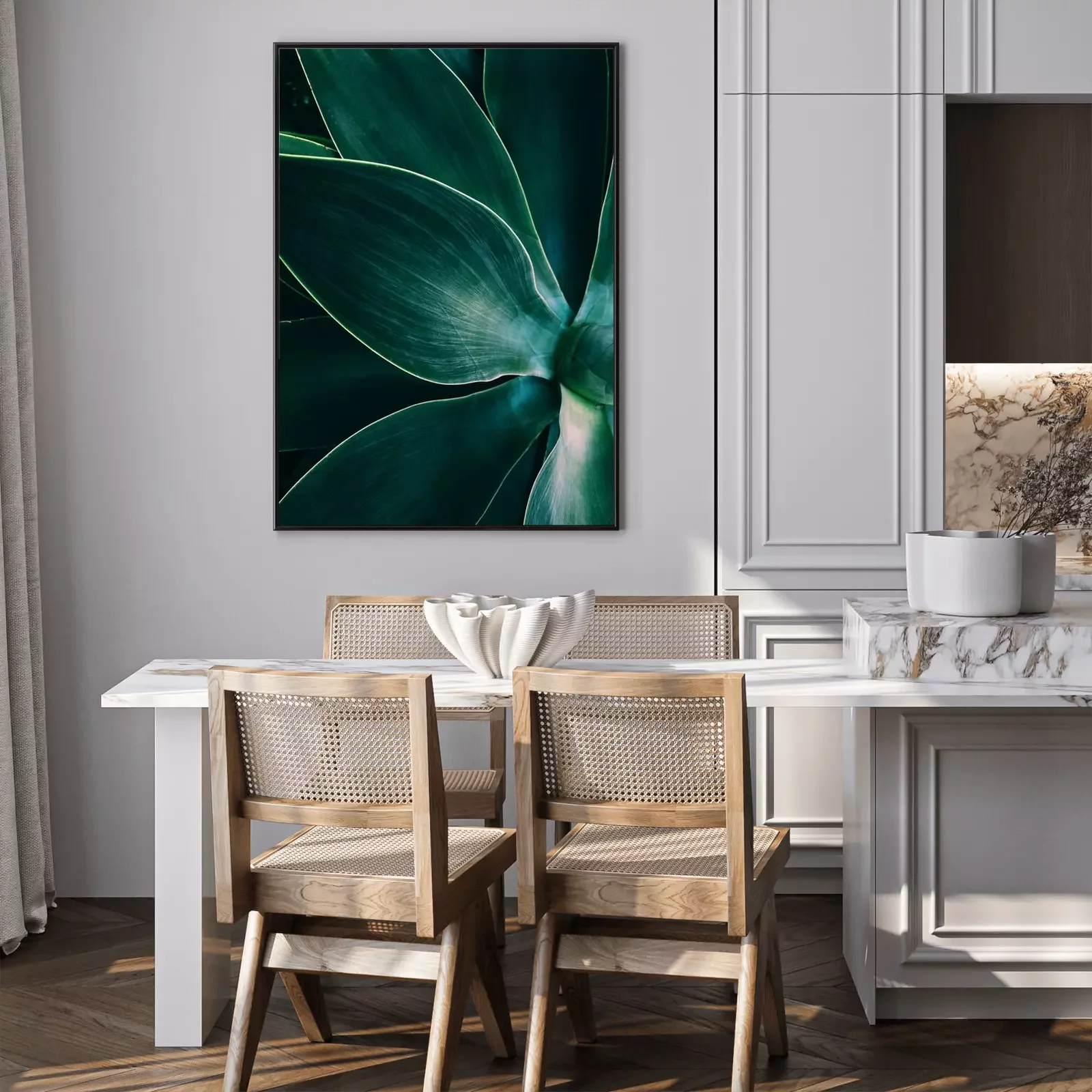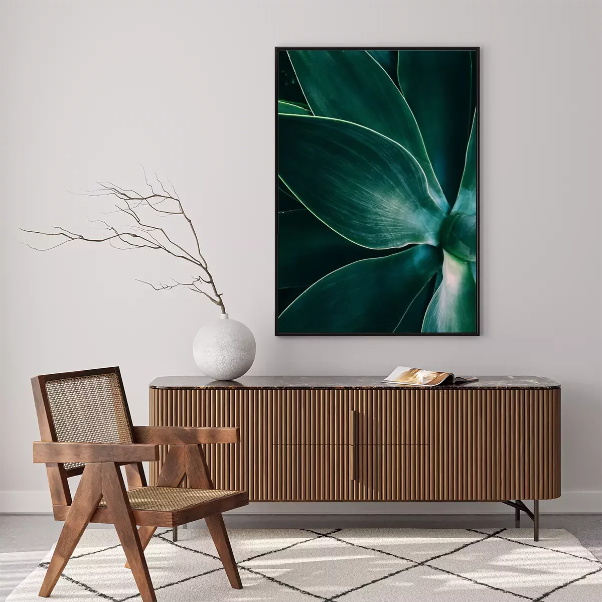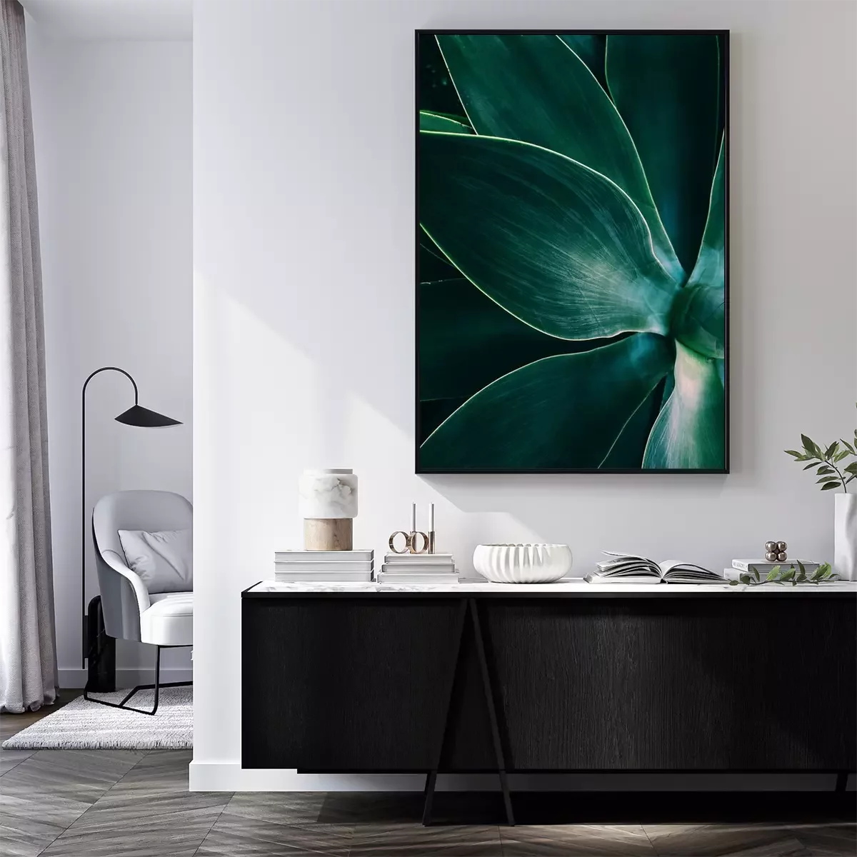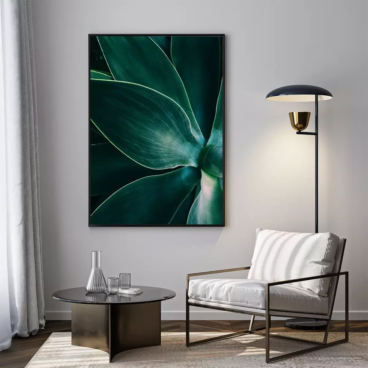 Poster  Agave leaves close up shot in low key. Dark background texture