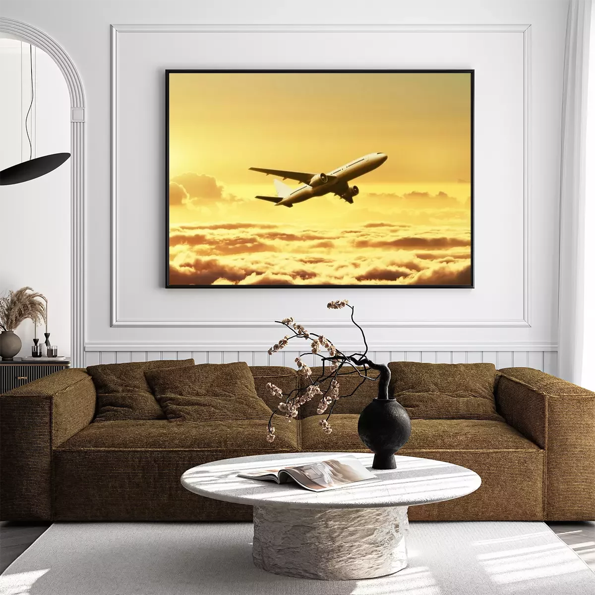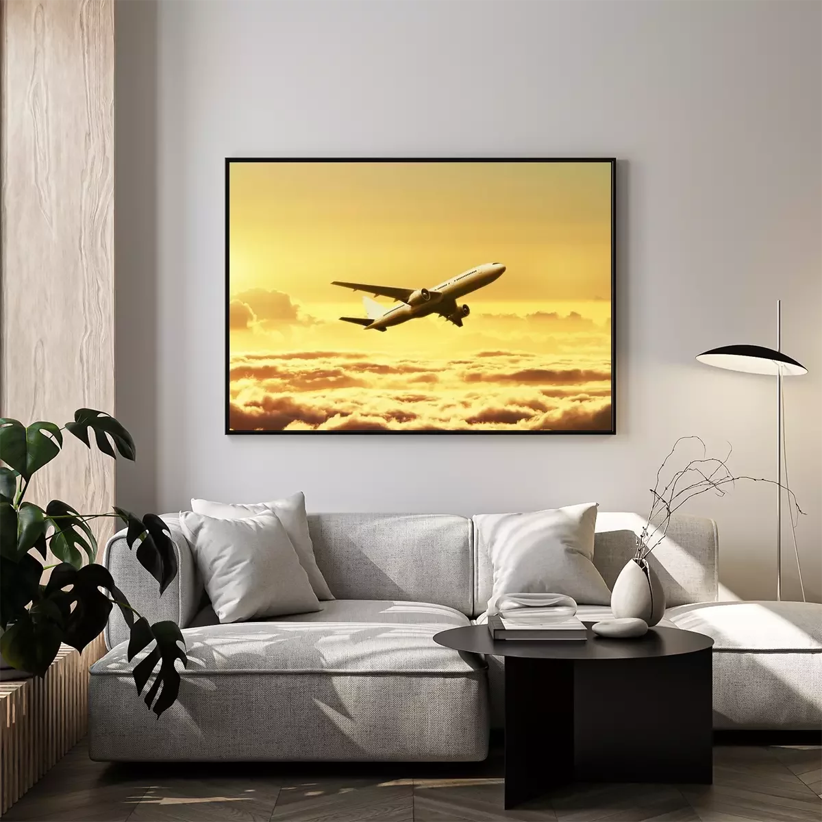 Poster  Airplane in the sky at sunset