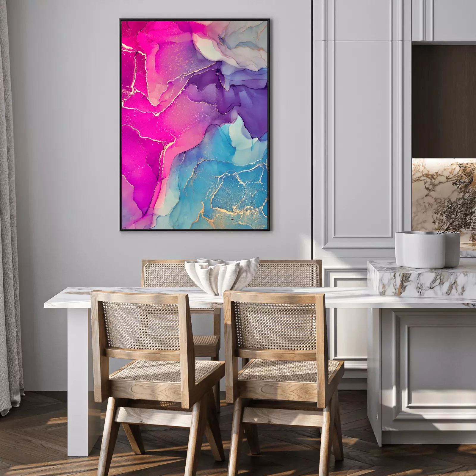 Poster  Alcohol ink colors translucent. Abstract multicolored marble texture background. Design wrapping paper, wallpaper. Mixing acrylic paints. Modern fluid art. Alcohol Ink Pattern