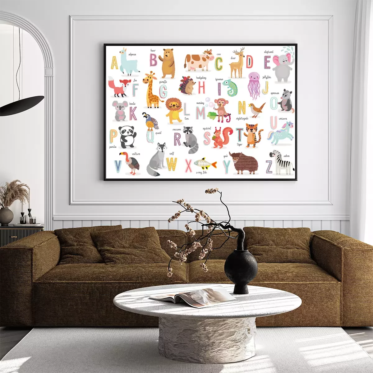 Poster : Alphabet animaux mignons pour l'éducation des enfants. Personnages de style dessinés à la main drôle.